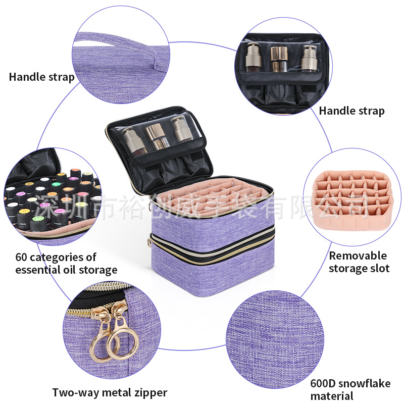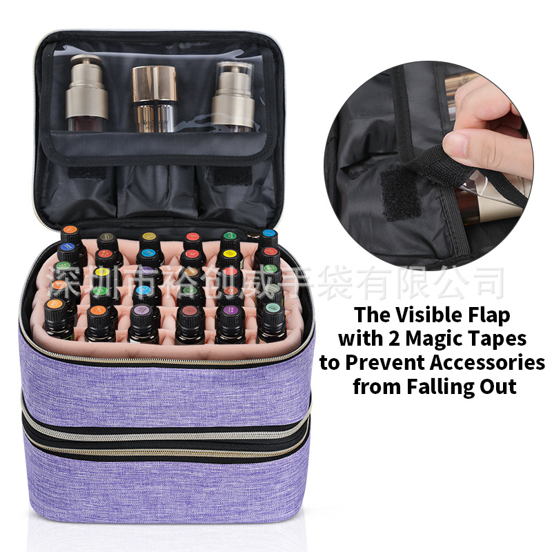 공장 도매 뷰티 살롱 특수 가정용 에센셜 오일 백 2 레이어 60 그리드 에센셜 오일 병 가방 립스틱 보관 가방 구성 가방