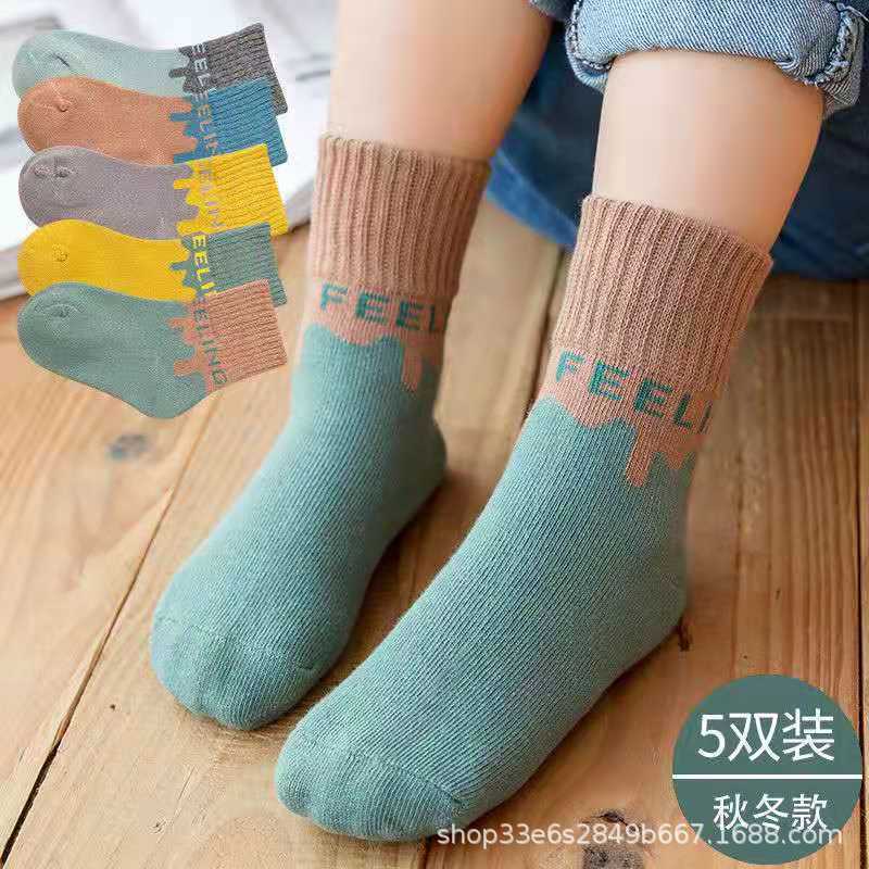 어린이 양말 가을 두꺼운면 양말 유니버설 블루 만화 겨울 모기 방지 소년과 소녀 중간 긴 양말스토어 가기