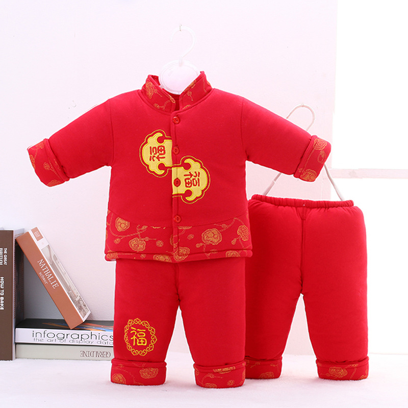 아기 새해 옷 축제 봄 축제 새해 옷 중국 스타일 신생아 빨간 면 패딩 코트 두꺼운 당나라 세트 한푸 겨울 옷스토어 가기