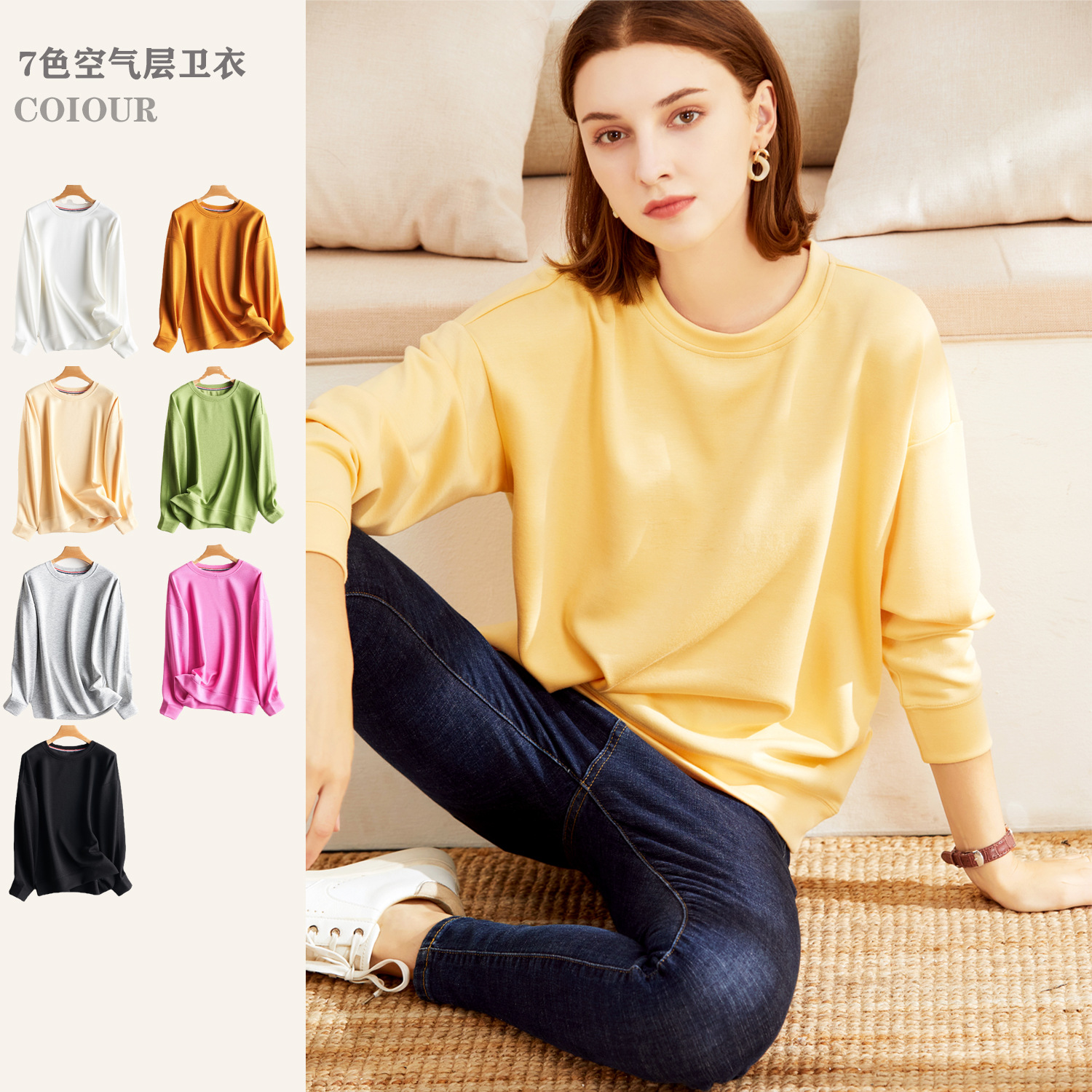 공장 재고 새로운 가을과 겨울 게으른 느슨한 에어 레이어 크루 넥 스웨터 한국 단색 풀오버 긴 소매 스웨터 여성스토어 가기