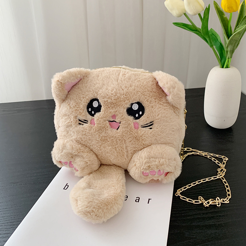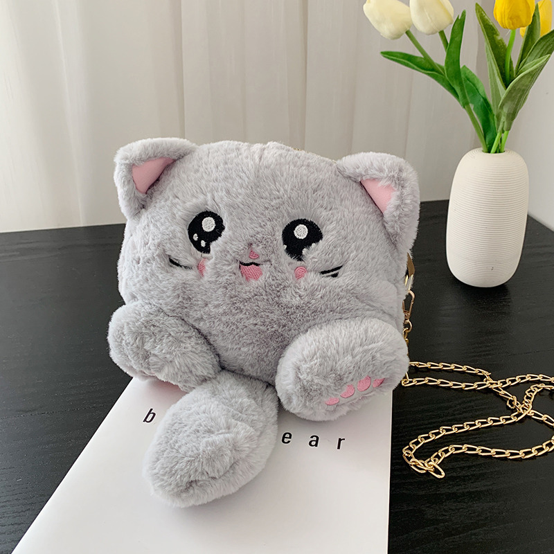2021 가을과 겨울 새로운 한국 스타일 봉제 만화 고양이 여성 체인 숄더 크로스 바디 백 귀여운 어린이 봉제 가방