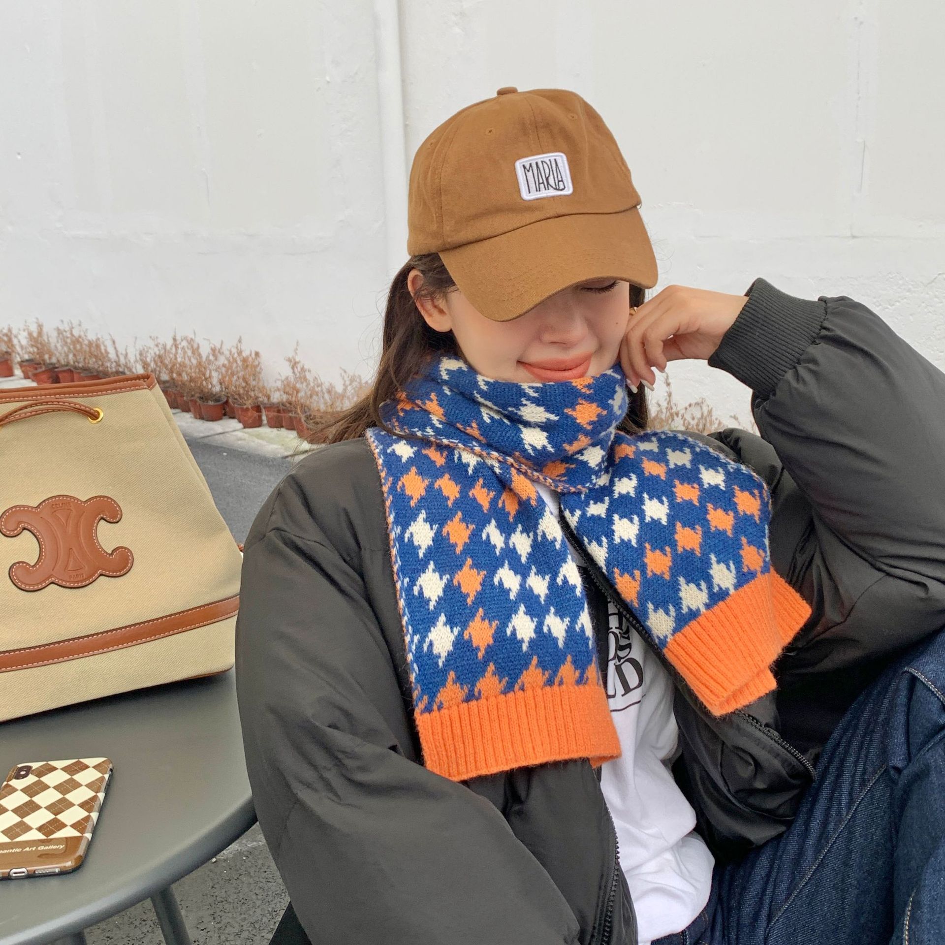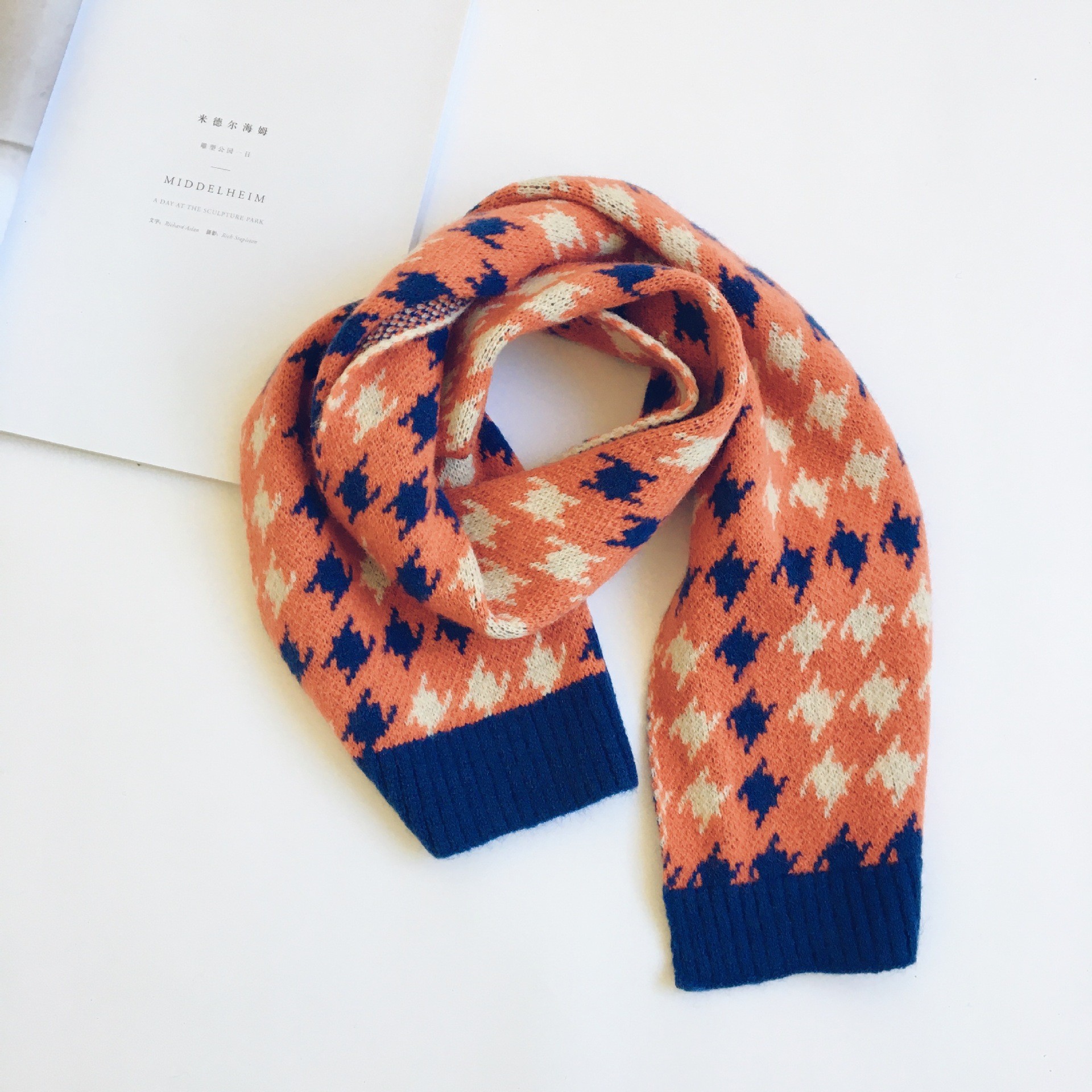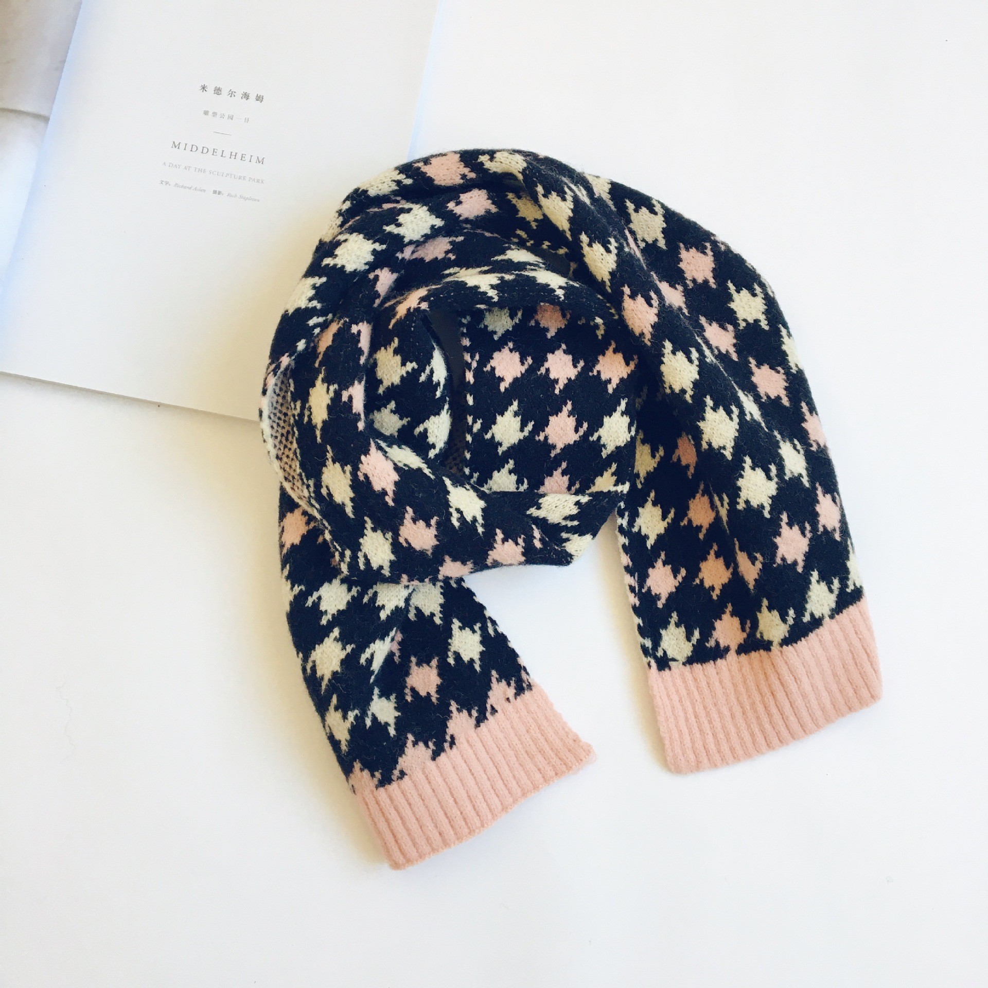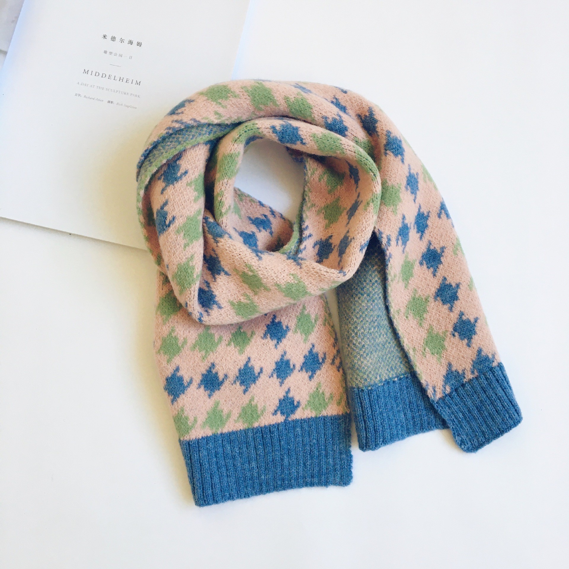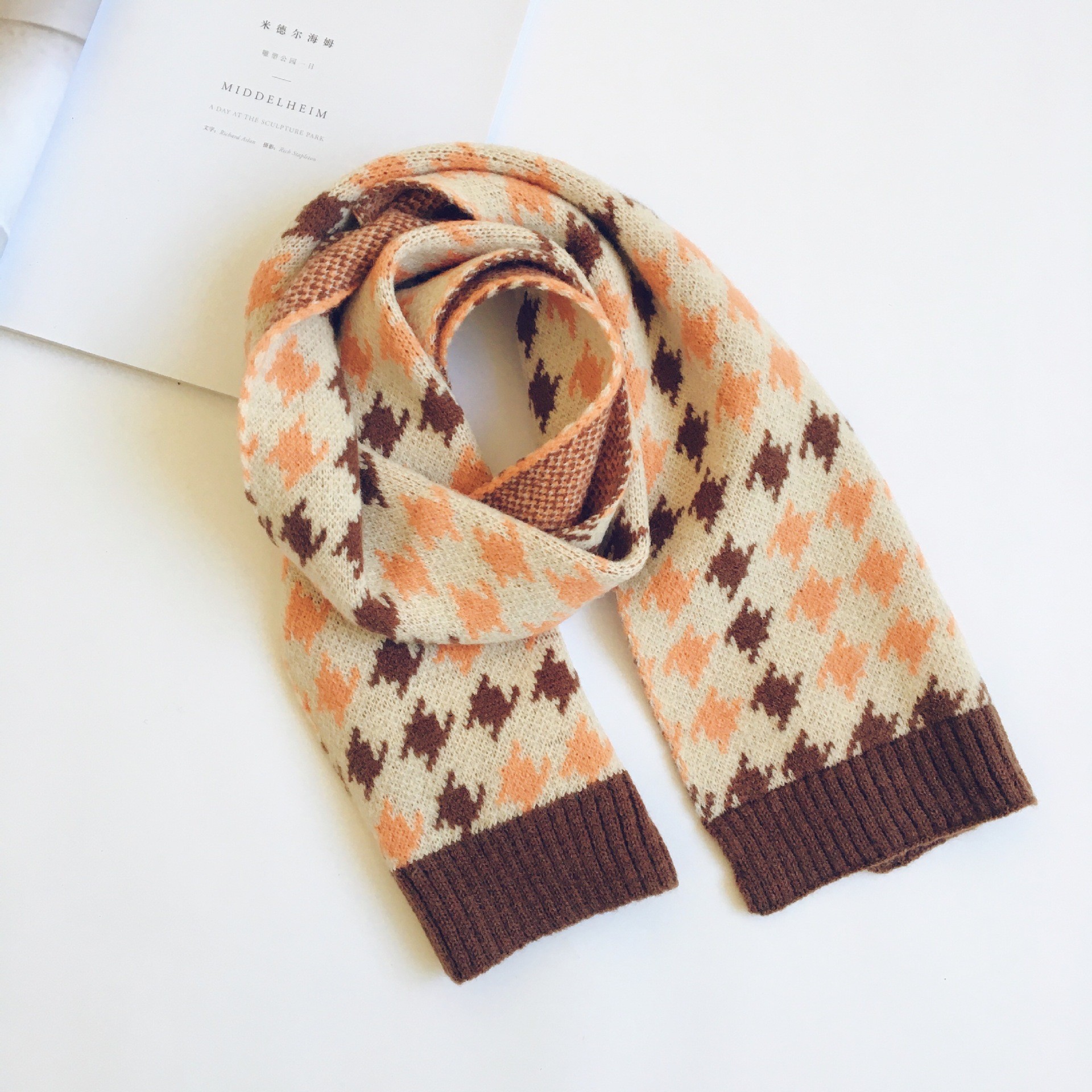 영국 스타일 패션 대비 색상 Houndstooth 니트 스카프 가을과 겨울 새로운 따뜻한 워킹 쇼 울 대형 숄스토어 가기