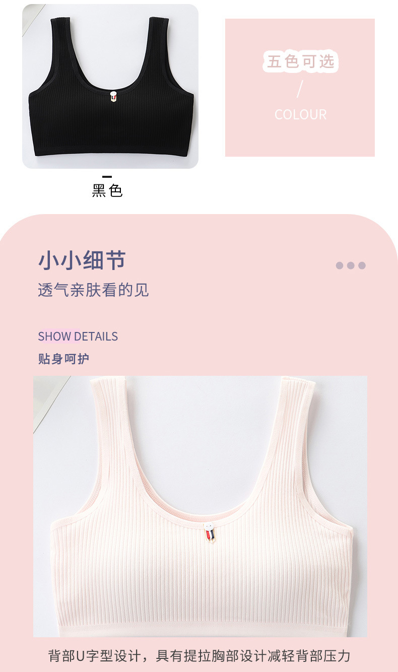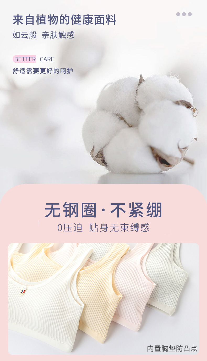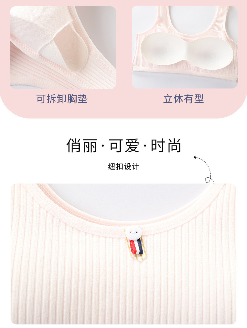 여아용 속옷, 발달기용 가슴 패드 내장, 돌출 방지, 중학생용 노와이어 브라, 발달기 전용