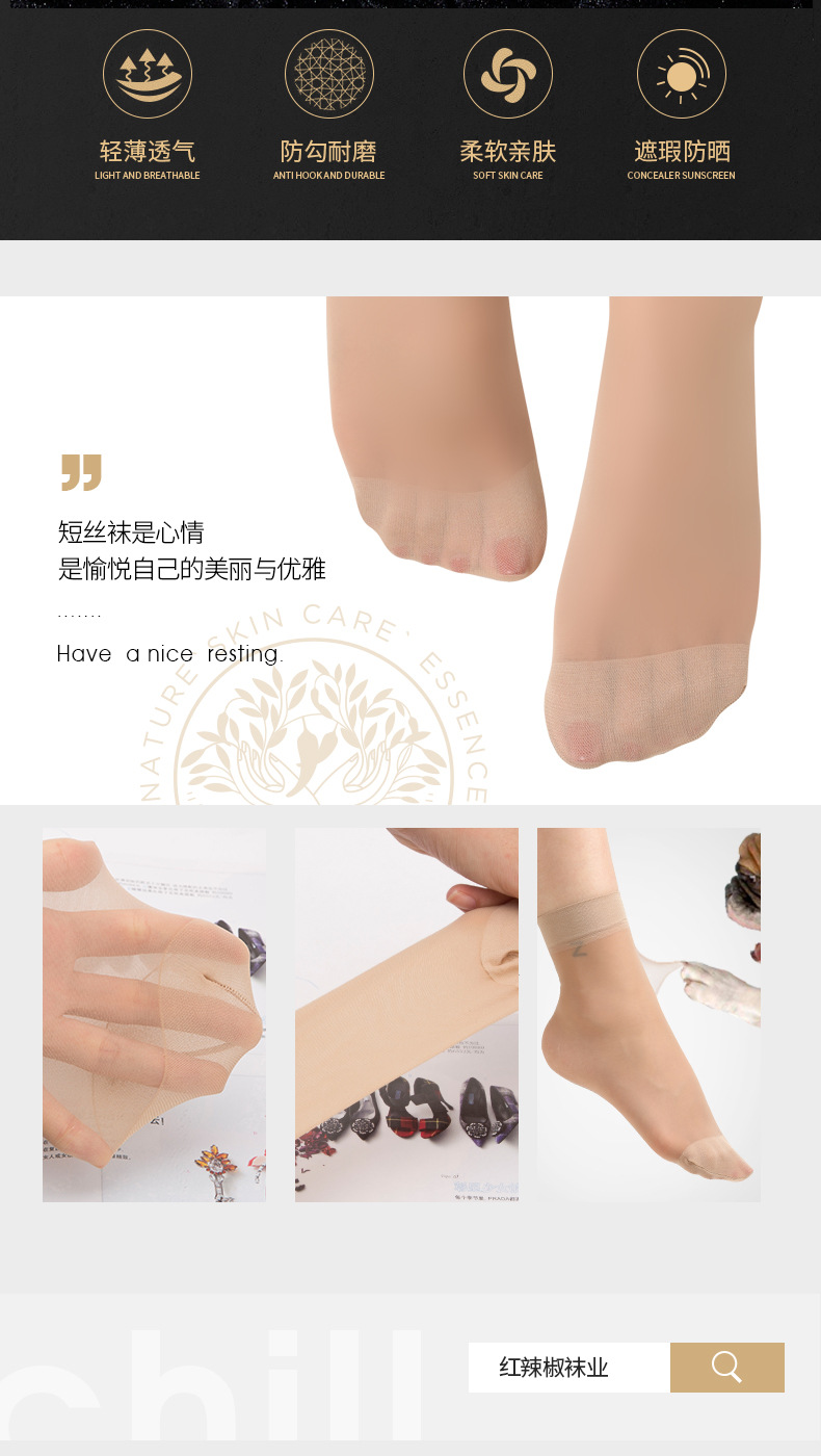 붉은 고추 여름 초박형 짧은 스타킹 여성의 내마모성 방지 후크 벨벳 팁 강화 미끄럼 방지 비 표시 짧은 스타킹스토어 가기