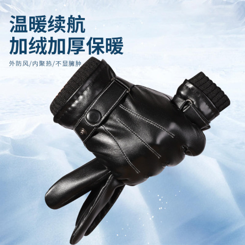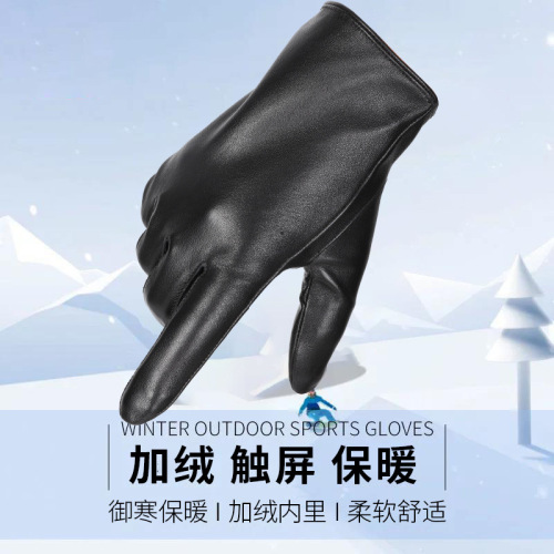 모조 양피 장갑 남성용 따뜻하고 두꺼운 사이클링 플러스 벨벳 겨울 터치 스크린 운전 오토바이 얇은 장갑