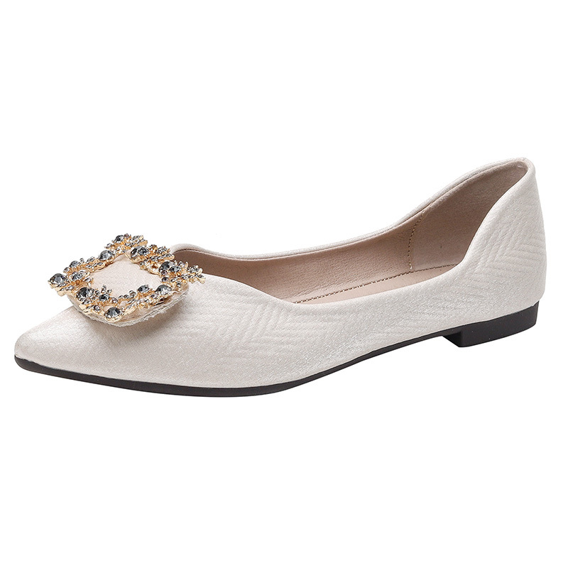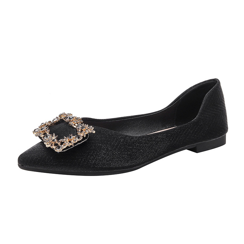 봄과 가을 플랫 바닥 낮은 재고 단색 비스코스 신발 뾰족한 플랫 힐 모조 다이아몬드 스퀘어 버클 울트라 섬유 플러스 사이즈 여성 신발 41-43