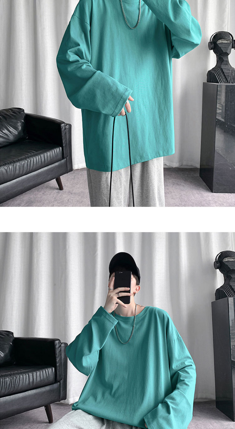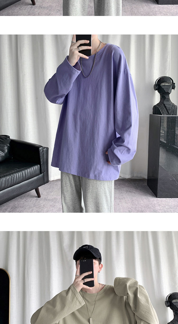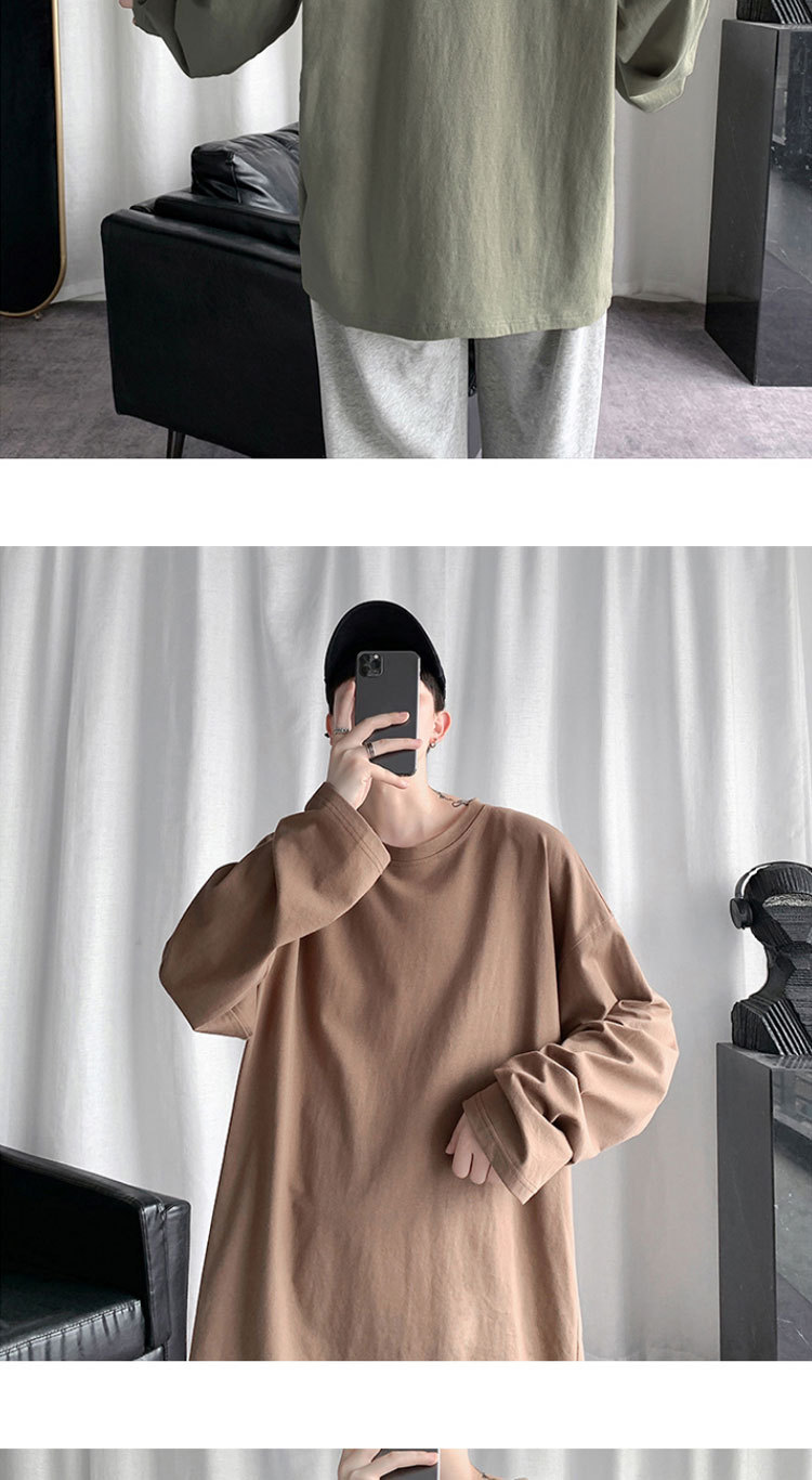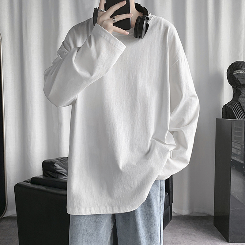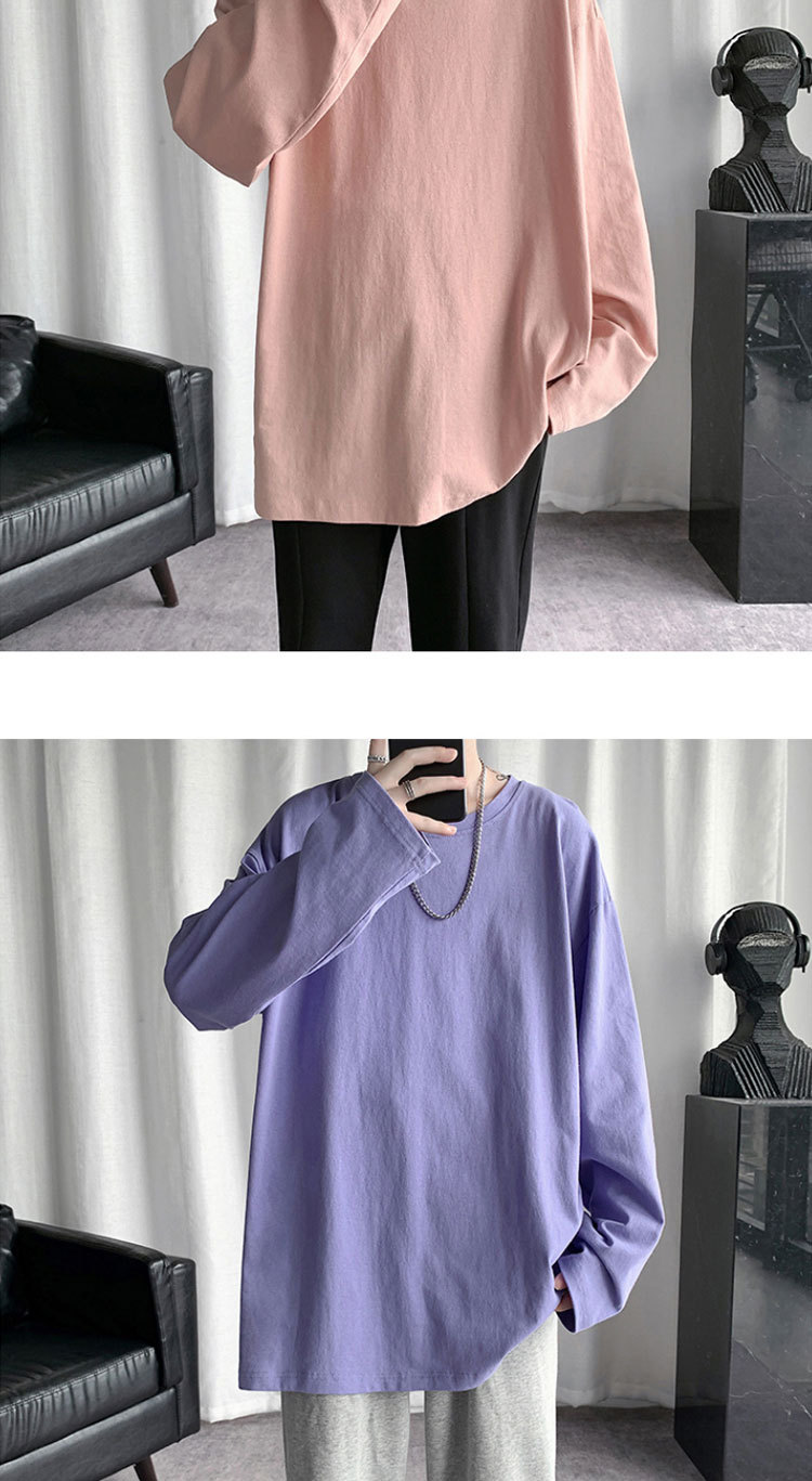 봄과 가을 색상 긴팔 티셔츠 남자의 유행 모든 경기 면 티셔츠 스택 내부 베이스 셔츠 핑크 탑스토어 가기
