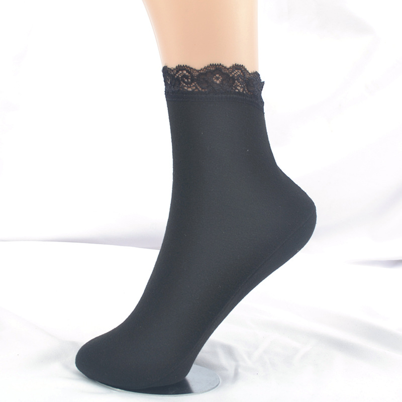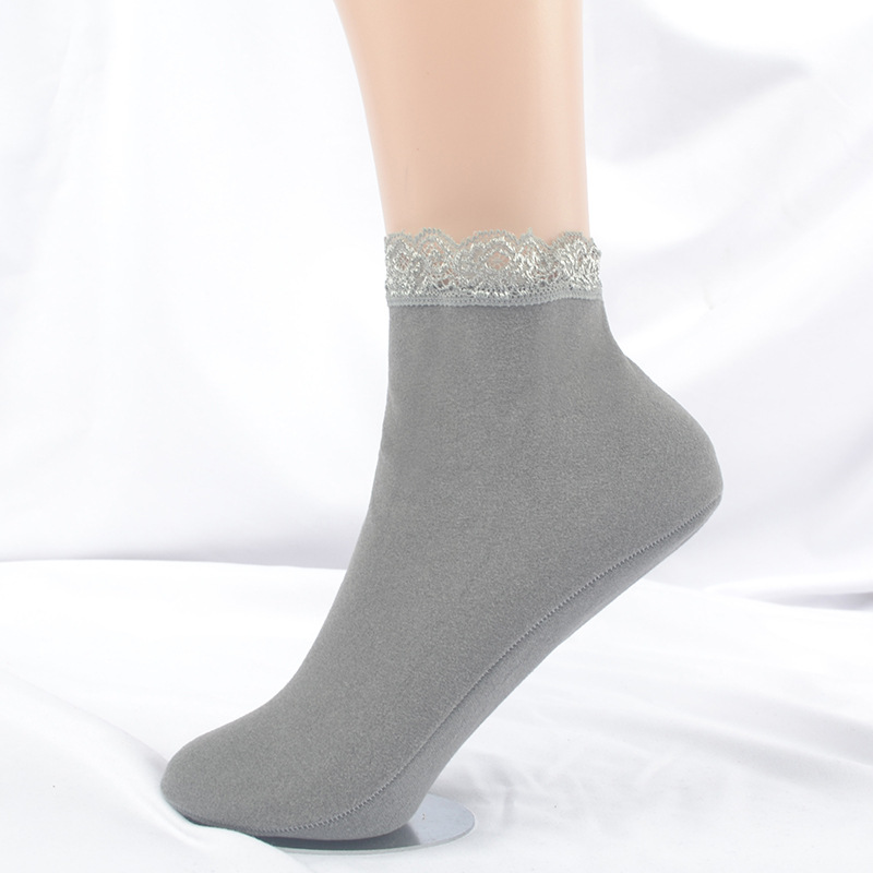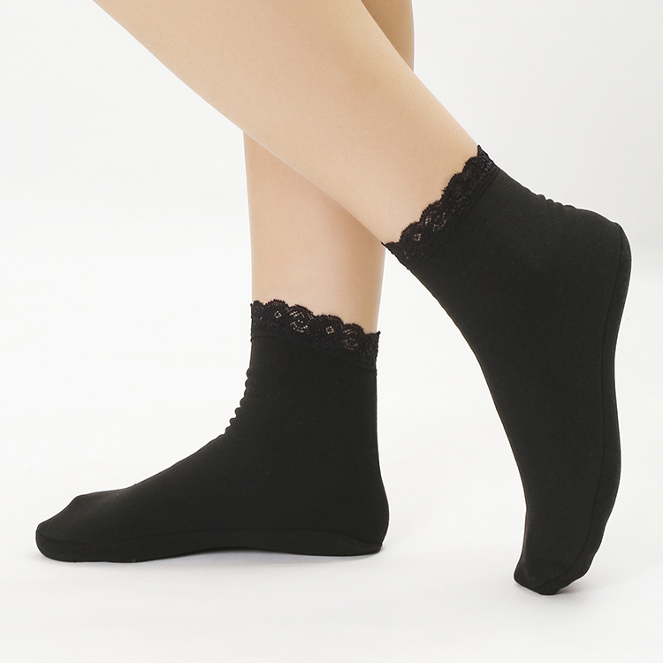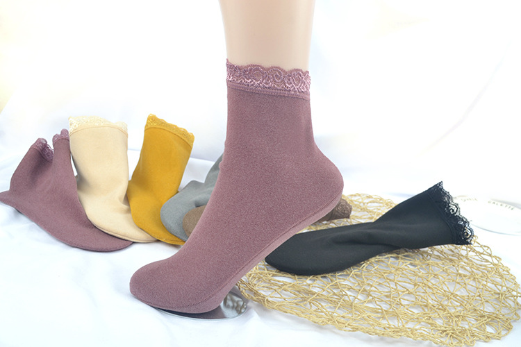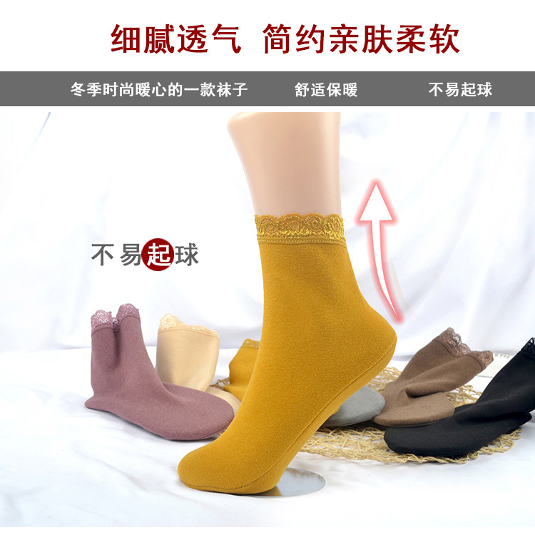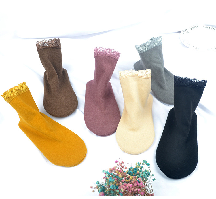 가을 겨울 보온 양말 단색 레트로 중간 길이 양말 두꺼운 기모 레이스 테두리 인스타 양말 여성 도매스토어 가기