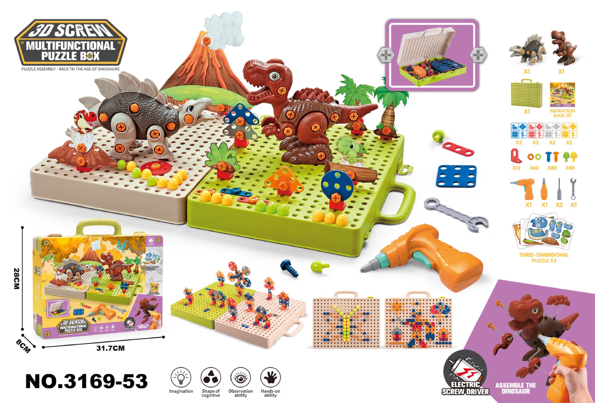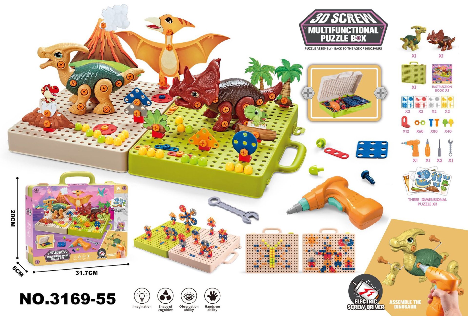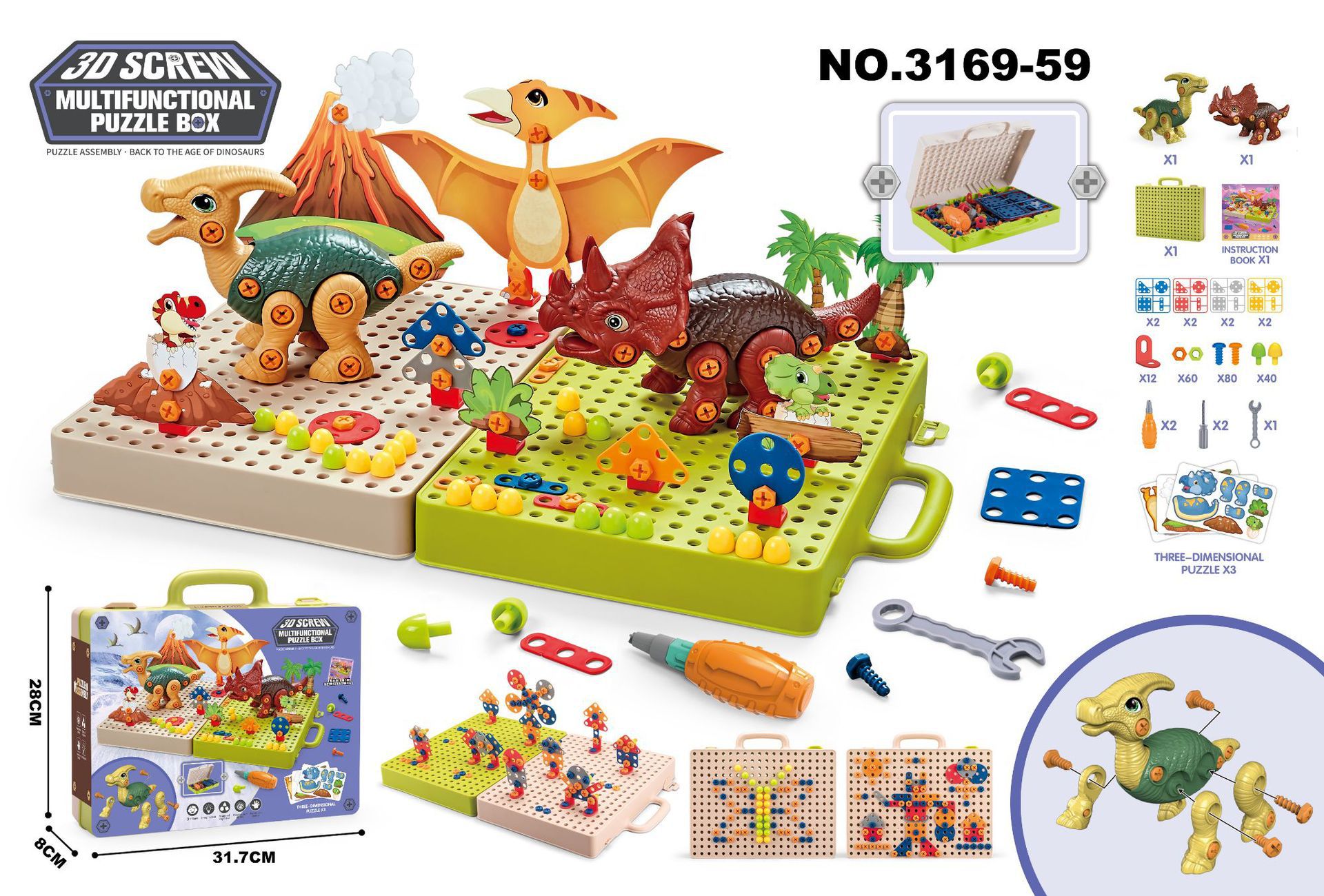 대외 무역 새로운 3D 해체 공룡 퍼즐 도구 상자 나사 어린이 빌딩 블록 버섯 손톱 DIY 조립 장난감스토어 가기