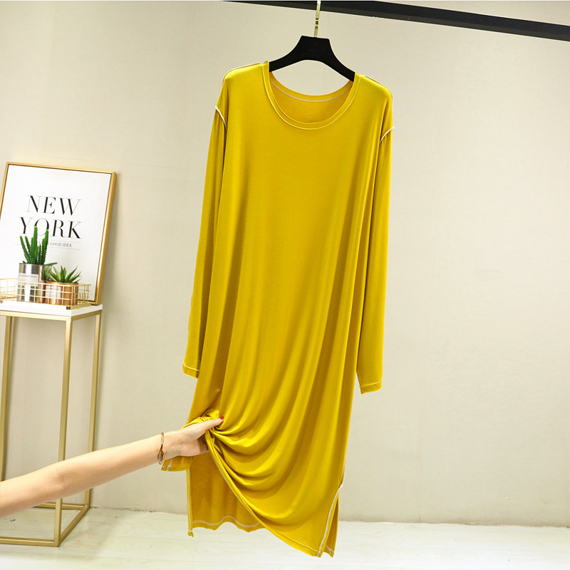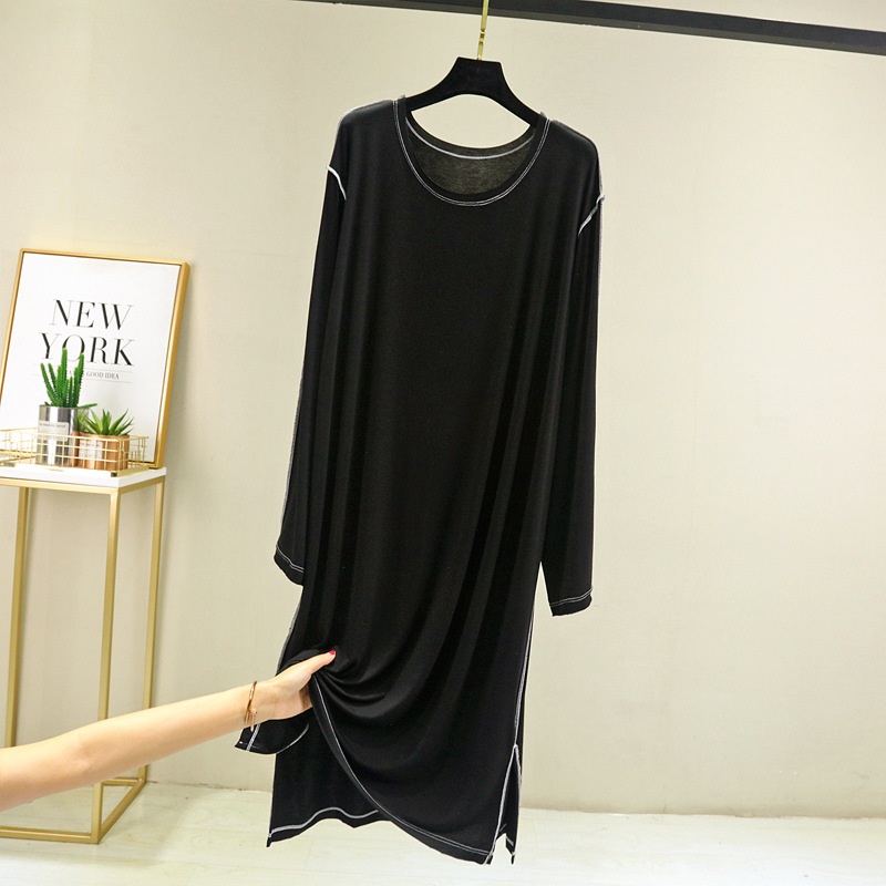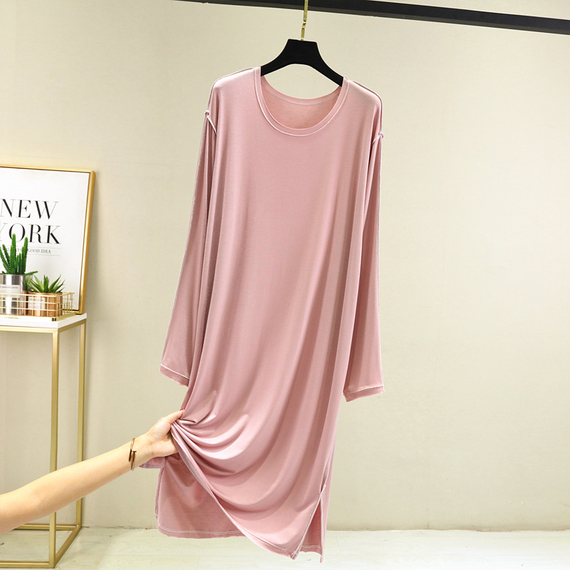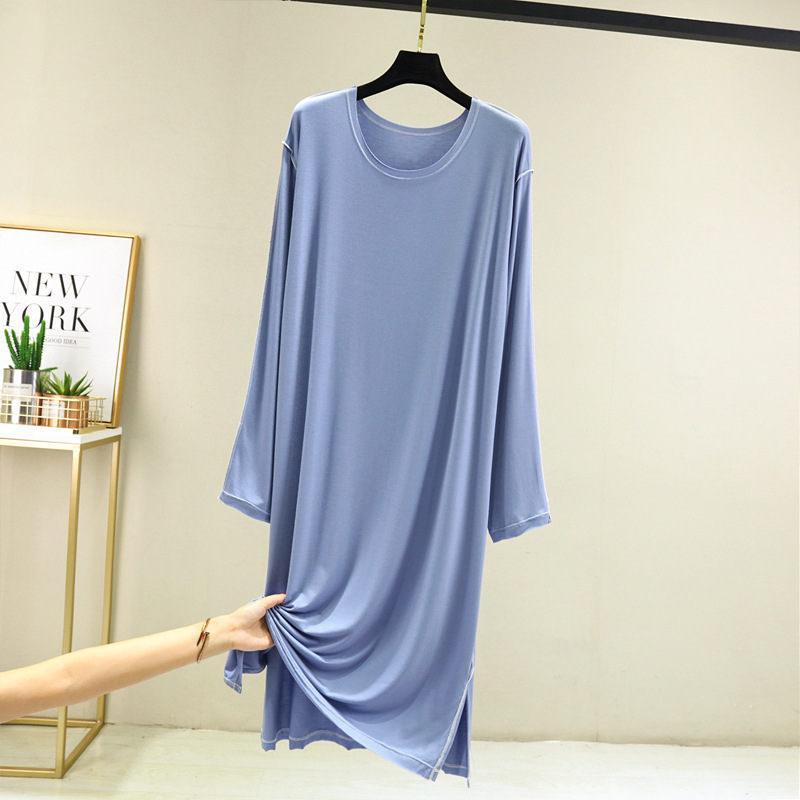 모달 긴팔 잠옷 여성용 가을 플러스 사이즈 느슨한 캐주얼 원피스 일본-한국 얇은 겉옷 스플릿 롱 원피스스토어 가기