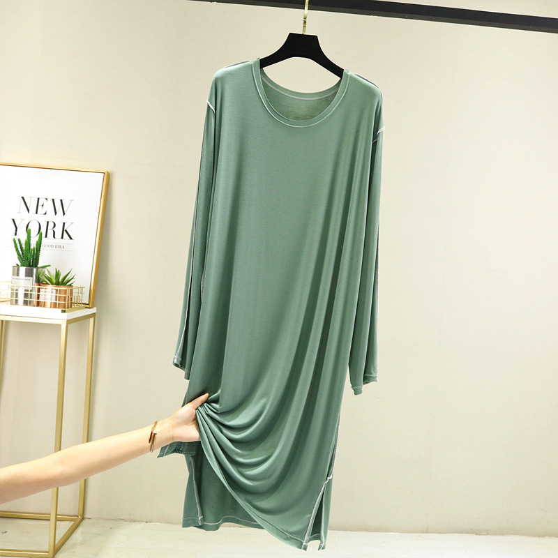 모달 긴팔 잠옷 여성용 가을 플러스 사이즈 느슨한 캐주얼 원피스 일본-한국 얇은 겉옷 스플릿 롱 원피스