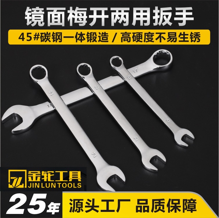 Jinlun 제조업체 도매 거울 이중 목적 렌치 연마 플랫 힘줄 오픈 매화 렌치 6-30 매화 오픈 이중 목적 렌치스토어 가기
