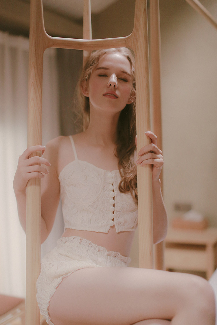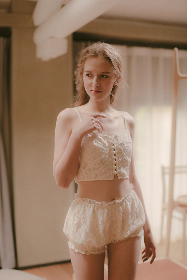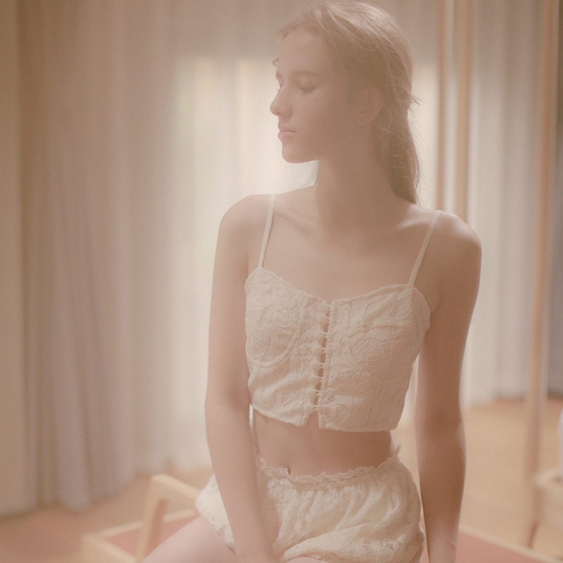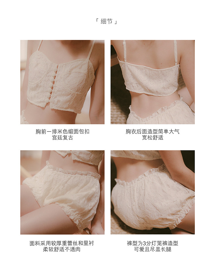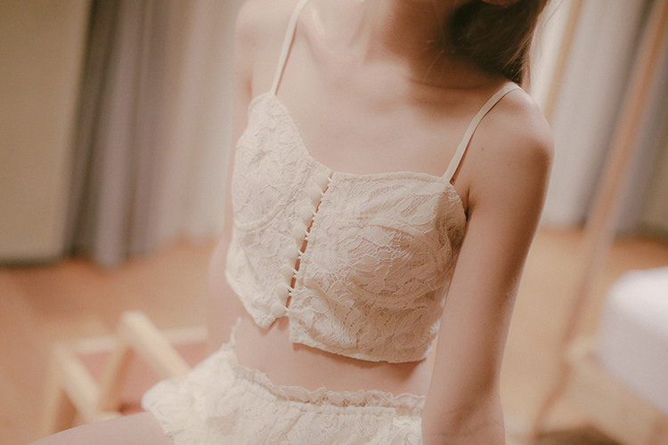 前襟一排可爱小扣子,好像一排泛着奶香的牛奶豆,呼应着周围细腻的蕾丝花,可爱又性感。