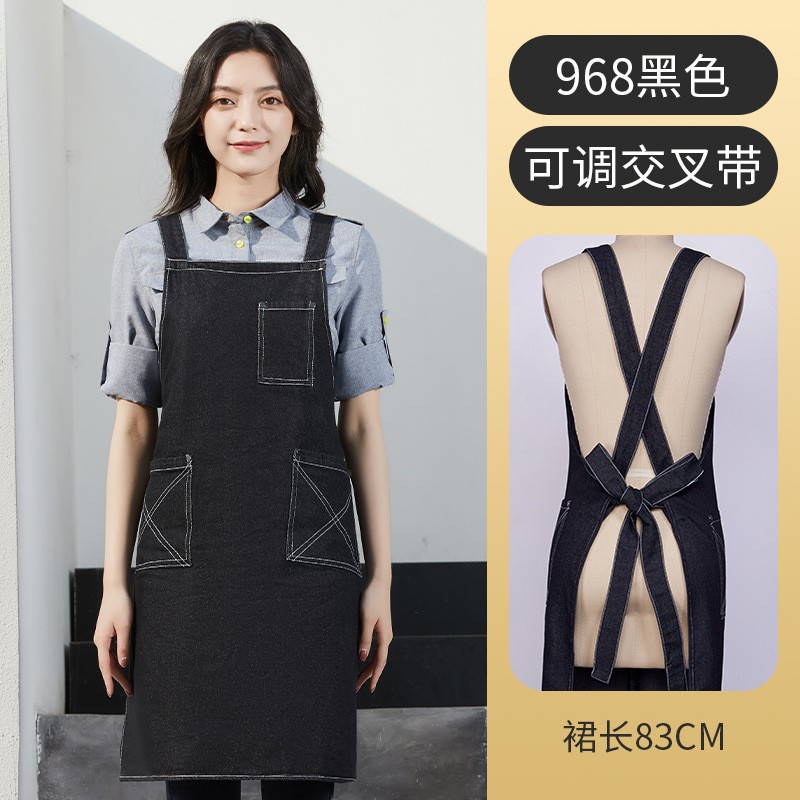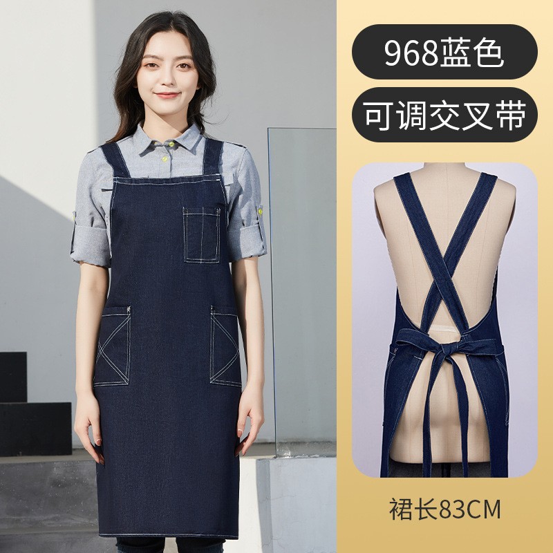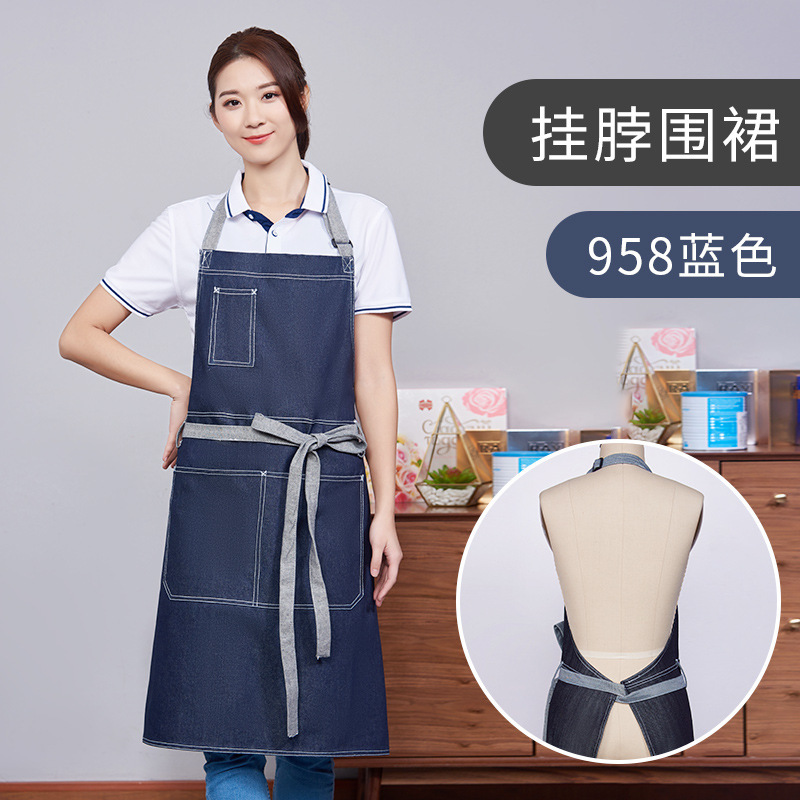 데님 앞치마 고급 커피 숍 긴 허리 그물 빨간 우유 차 가게 취사 바지 인쇄 로고 도매 공급스토어 가기