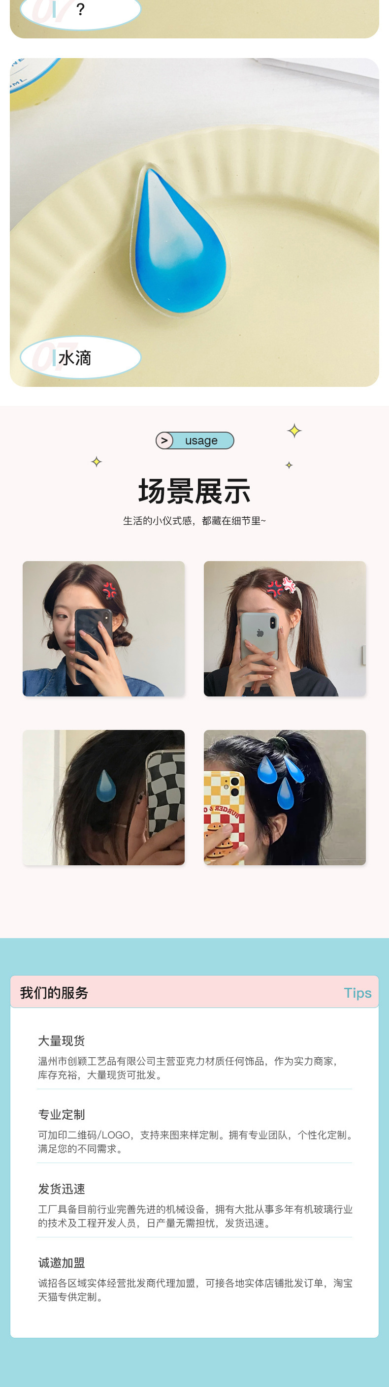 이모티콘 표현 팩 물방울 머리핀 엉덩이 클립 아크릴 클립 머리핀 재미 있은 땀 방울 pp 클립 스톨 도매