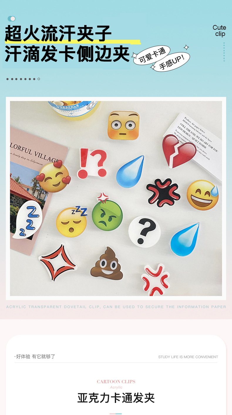 이모티콘 표현 팩 물방울 머리핀 엉덩이 클립 아크릴 클립 머리핀 재미 있은 땀 방울 pp 클립 스톨 도매스토어 가기