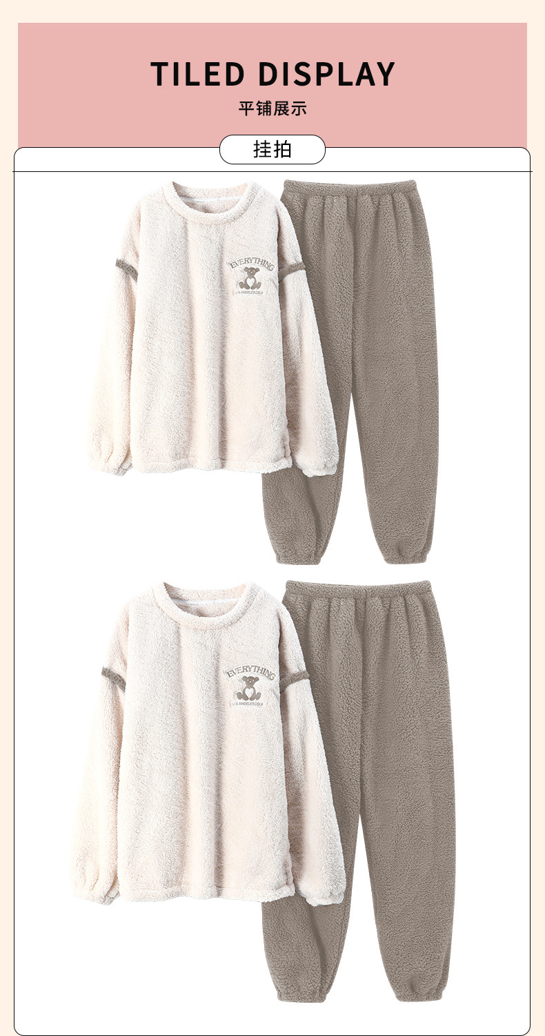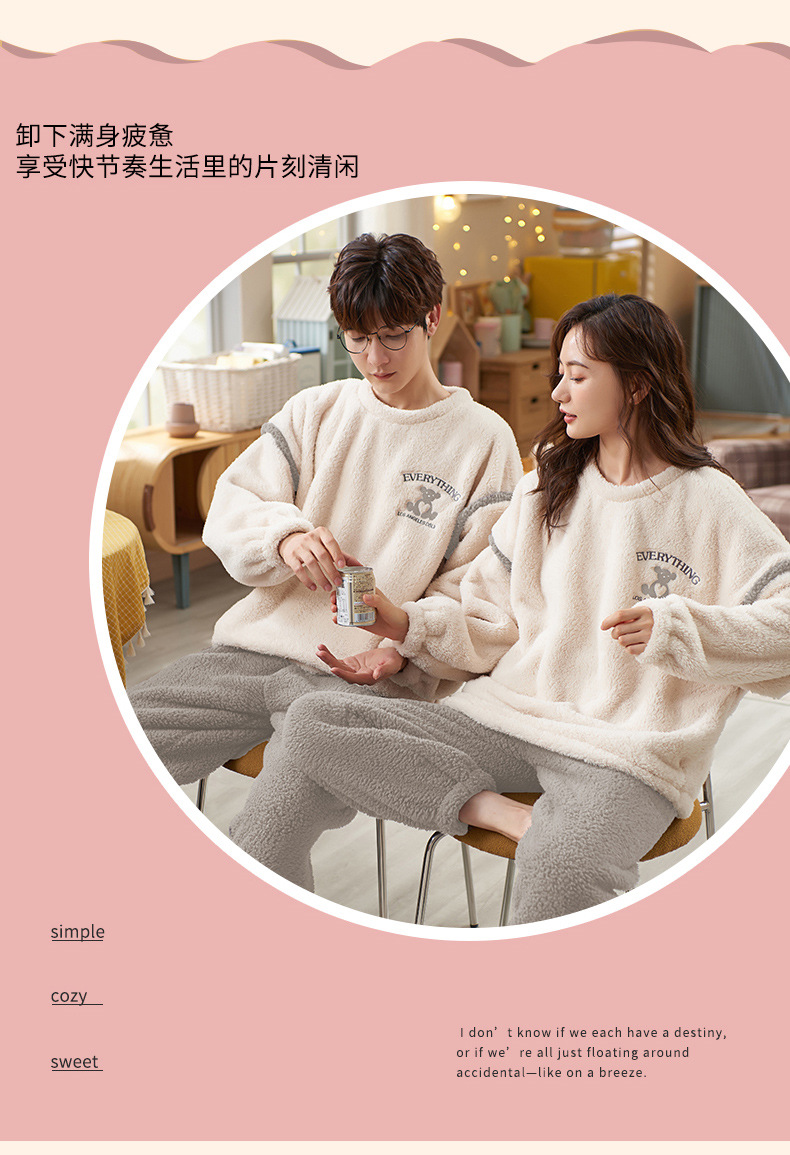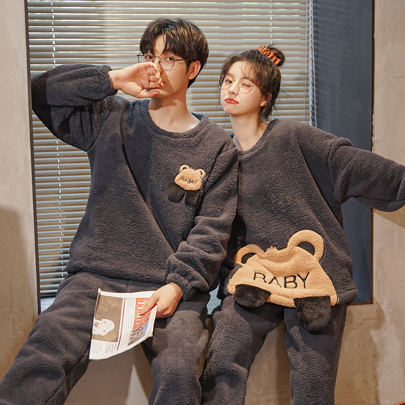 산호 양털 잠옷 여자의 겨울 기모 두꺼운 플란넬 커플의 가정 옷 남자의 따뜻한 귀여운 투피스 세트스토어 가기