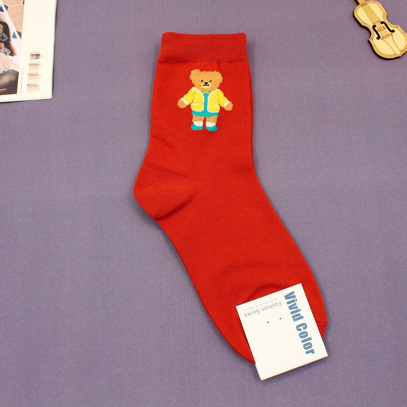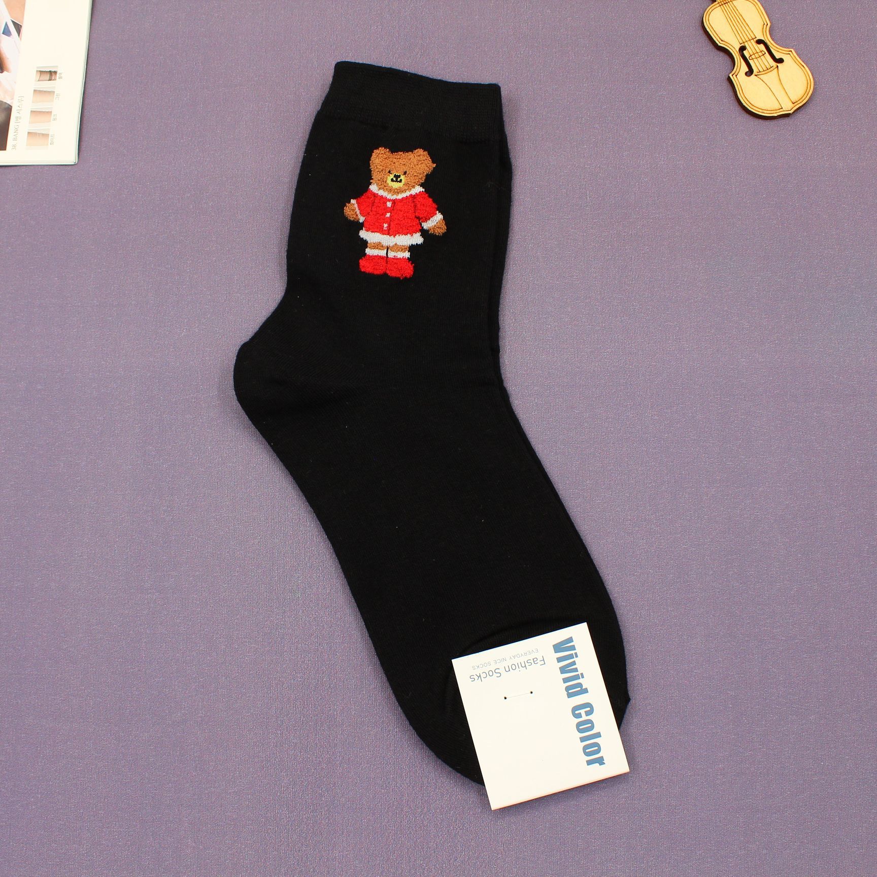 VW89 한국 동대문 여성 양말 귀여운 봉제 곰 패턴 가을 새 여자 양말 도매