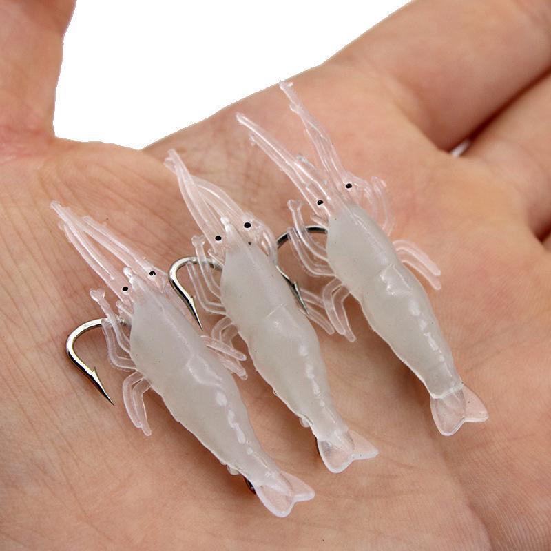 虾型软饵:模仿的是虾子在水中游荡跳动的情形。 是受市场欢迎的软饵类型之一