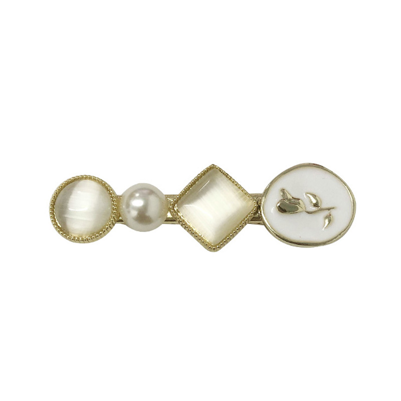 유약 로즈 프렌치 에지 클립 질감 앞머리 클립 소녀의 심장 진주 클립 여성의 흰색 고양이 눈 헤어 클립