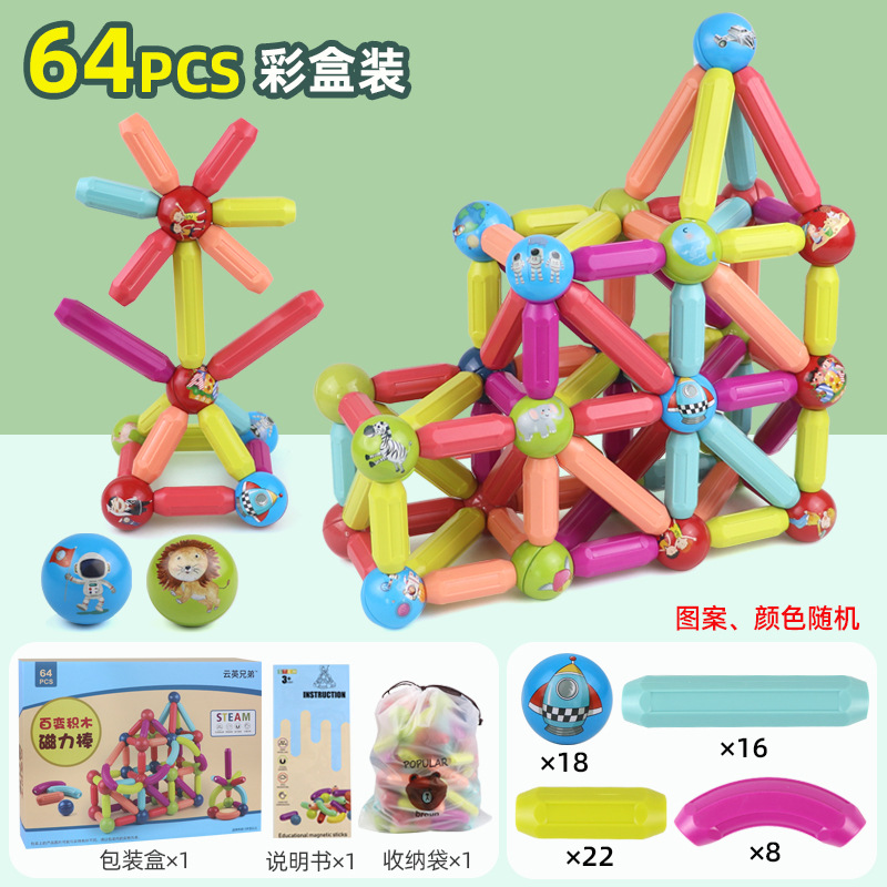 어린이 자석 막대 장난감 속이 빈 철구 합성 블록 액세서리 조립 대형 입자 조기 교육 자석 조립스토어 가기