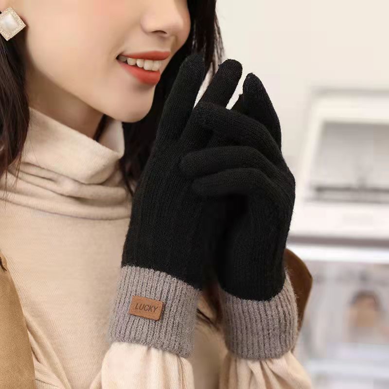 터치 스크린 장갑 여자의 겨울 귀여운 한국 스타일 기모 두꺼운 니트 울 다섯 손가락 사이클링 겨울 따뜻하고 차가운 방지 학생