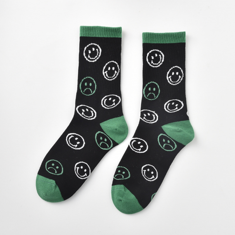 빈티지 흑백 바둑판 양말 남성 스타킹 트렌디 한 브랜드 그린 스트라이프 스마일 얼굴 스포츠면 양말 여성용 봄과 가을