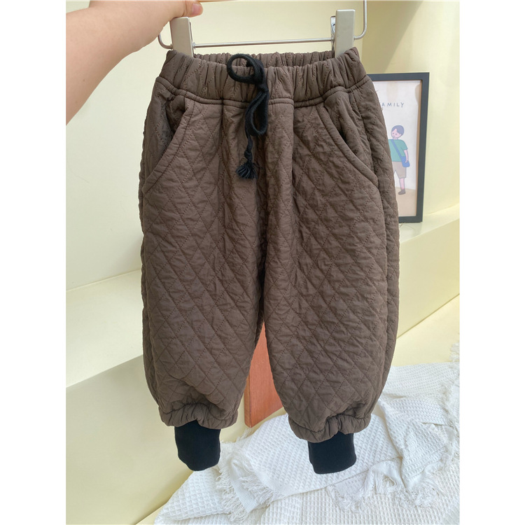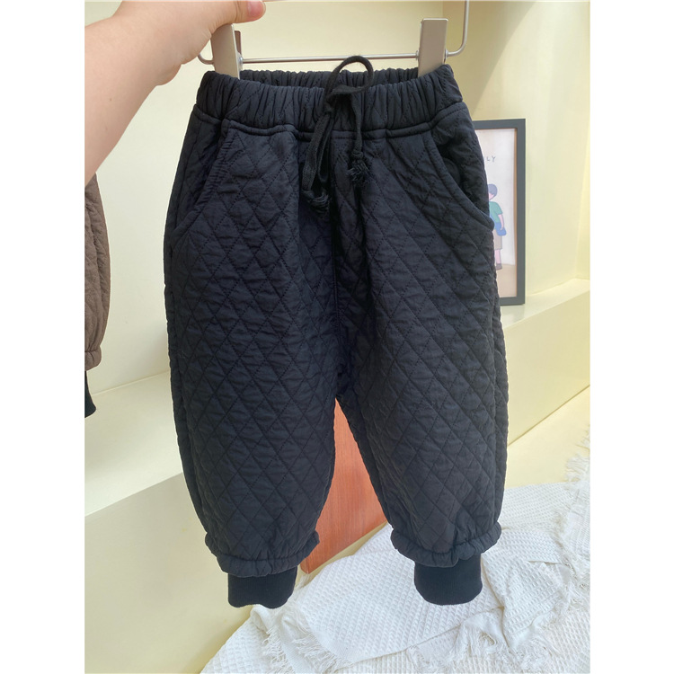 2022 한국 겨울 어린이 얇은 면 마름모 면 바지 소년 소녀 발 원피스 벨벳 패딩 바지 부츠 바지 패션스토어 가기