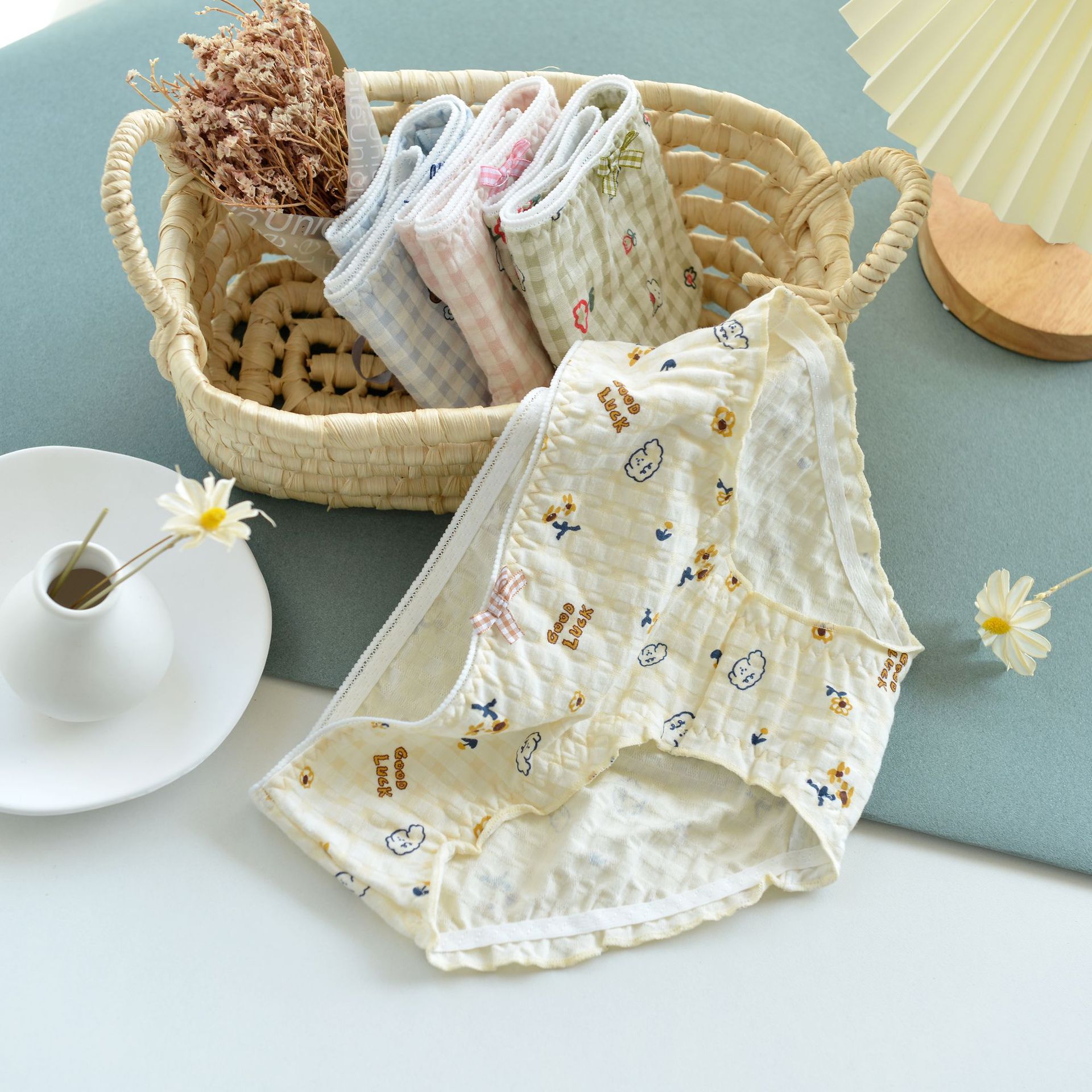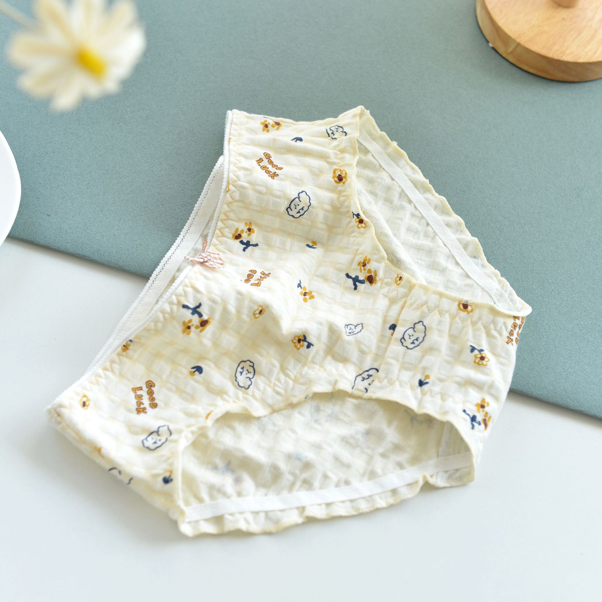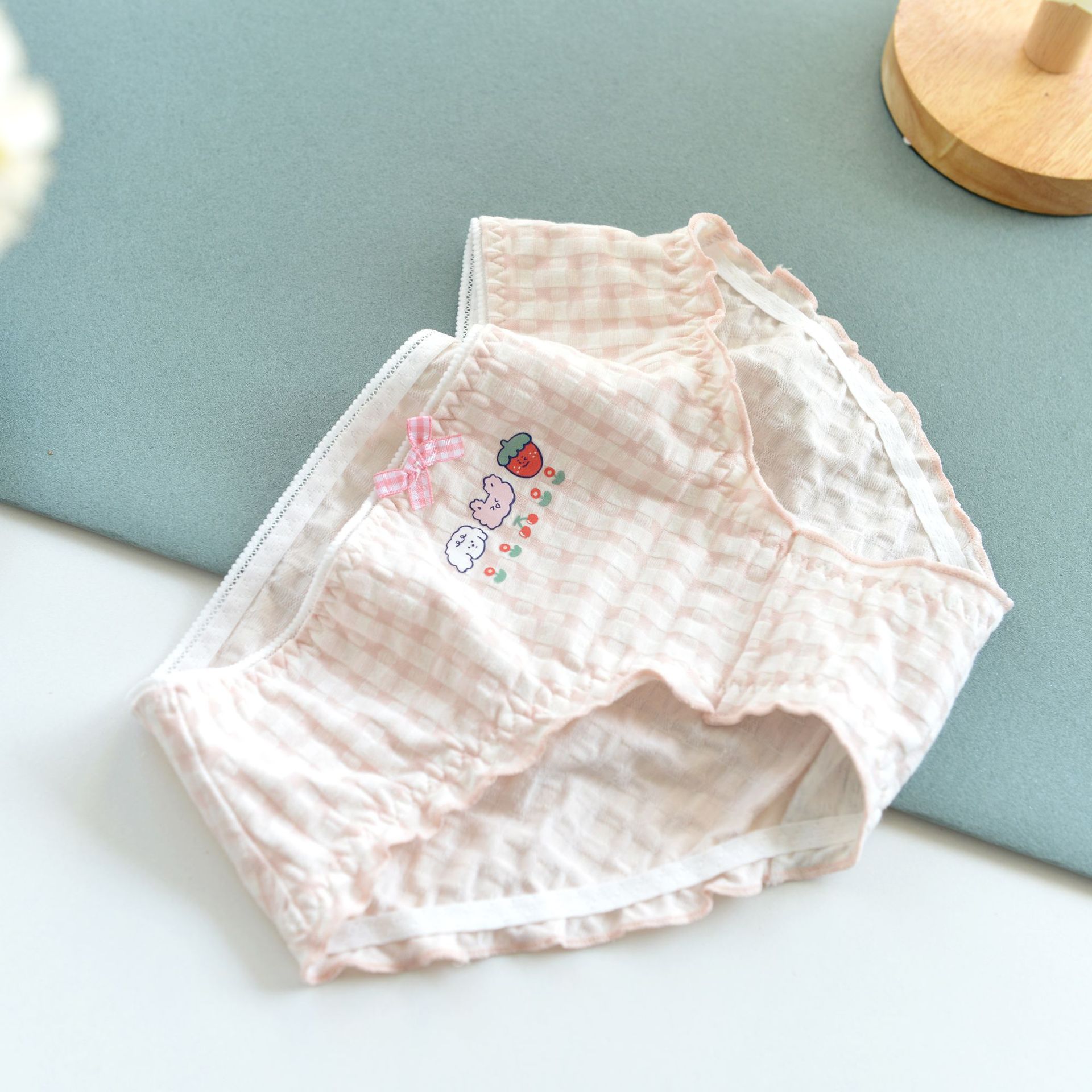 B218 장난스럽고 귀여운 부드러운 귀여운 스타일 절묘한 나비 버블 격자 무늬 피부 친화적 인 통기성 소녀의 중간 허리 속옷