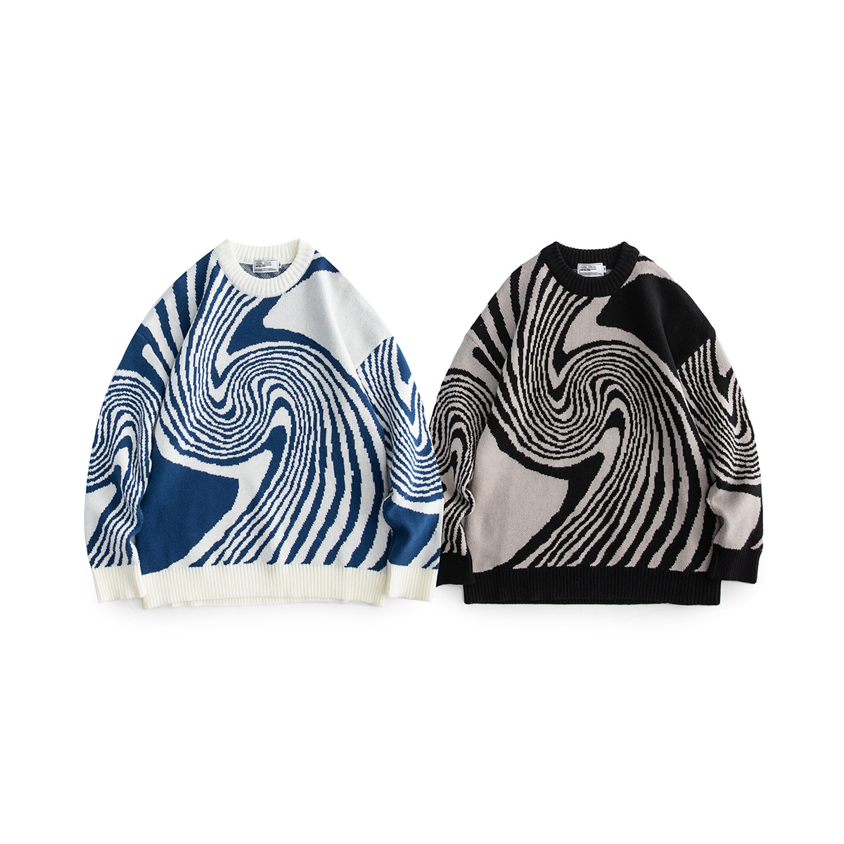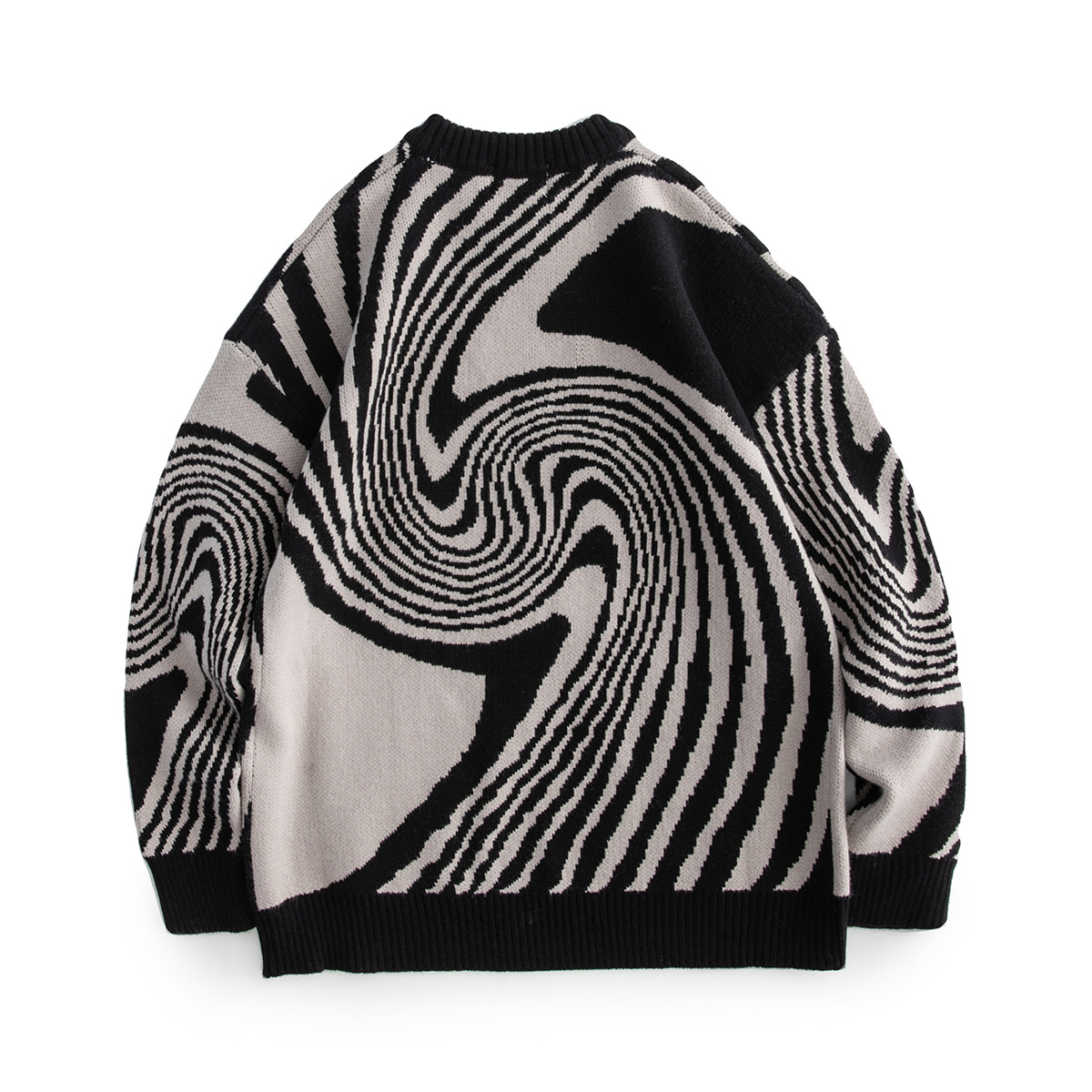 베이지에 남성복 아메리칸 스타일 트렌디 브랜드 2025 신상 기하학적 나뭇결 자카드 니트 스웨터 남녀공용스토어 가기