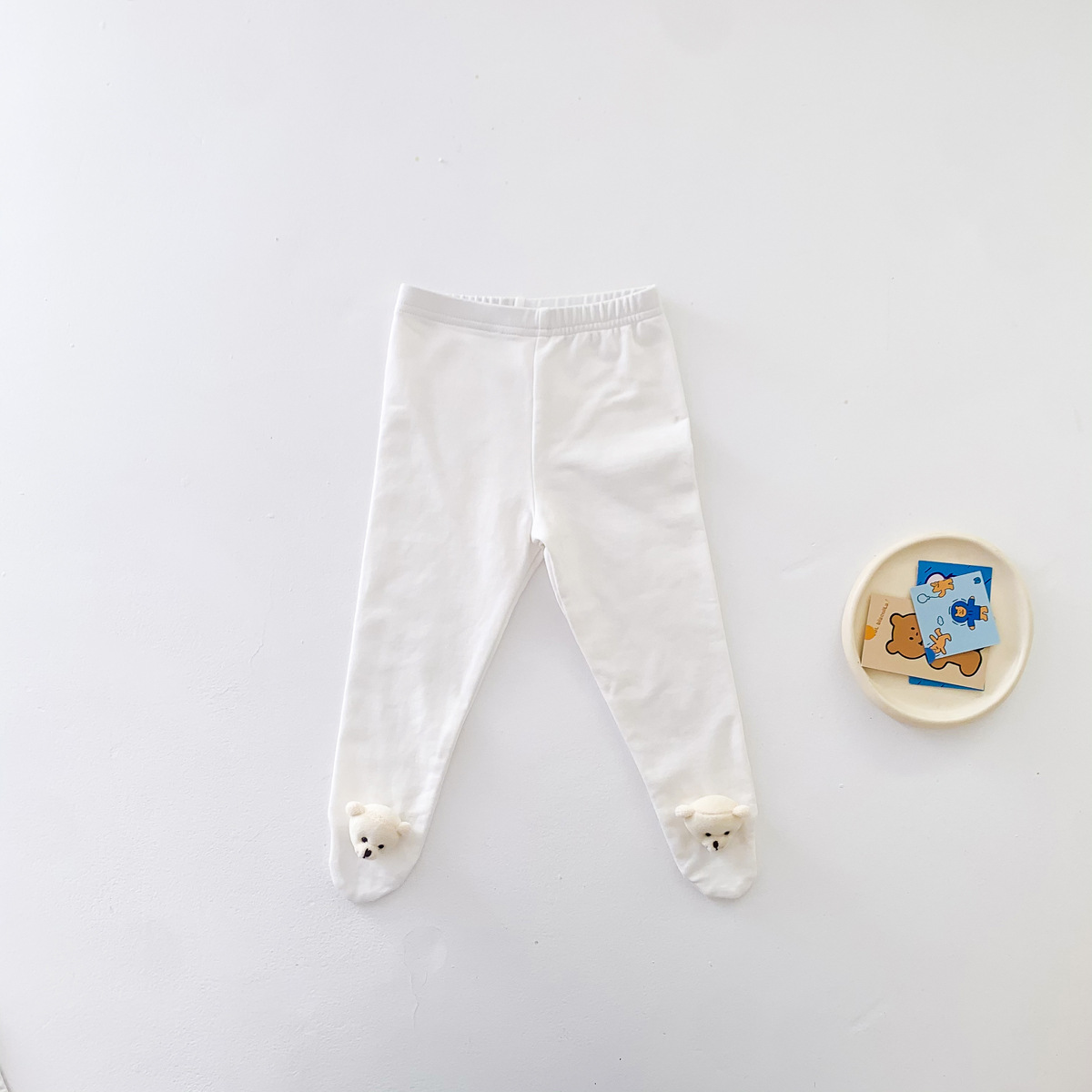 가을 새로운 아기 소년과 소녀 흰색 양말 레깅스 아기 간단한 만화 곰 머리 탄성 겉옷 바지스토어 가기