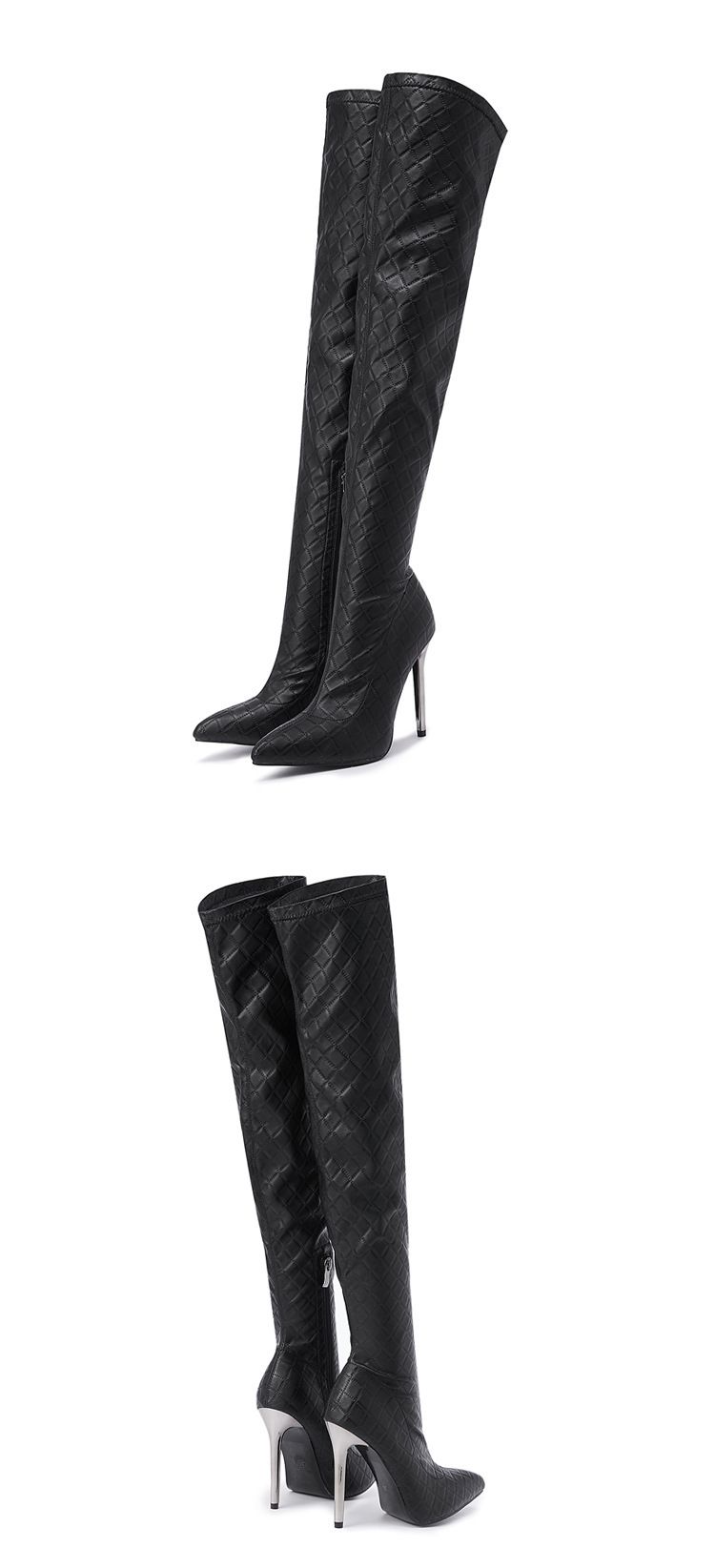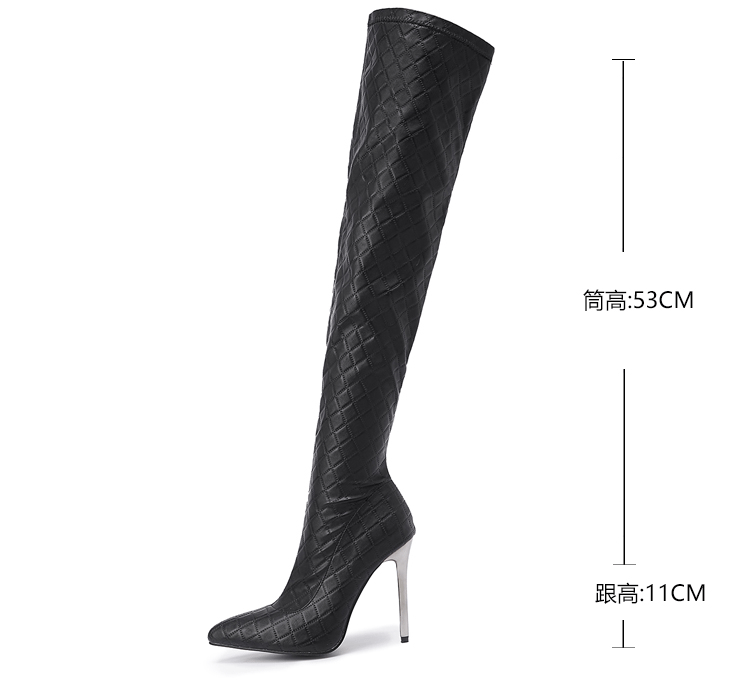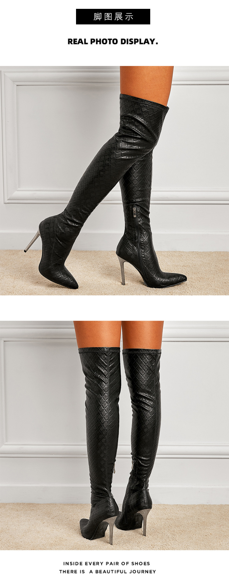 유럽과 미국 겨울 새로운 도매 재고 얇은 뒤꿈치 블랙 하이힐 뾰족한 슬림 스트레치 이상 무릎 부츠 어린이 부츠스토어 가기