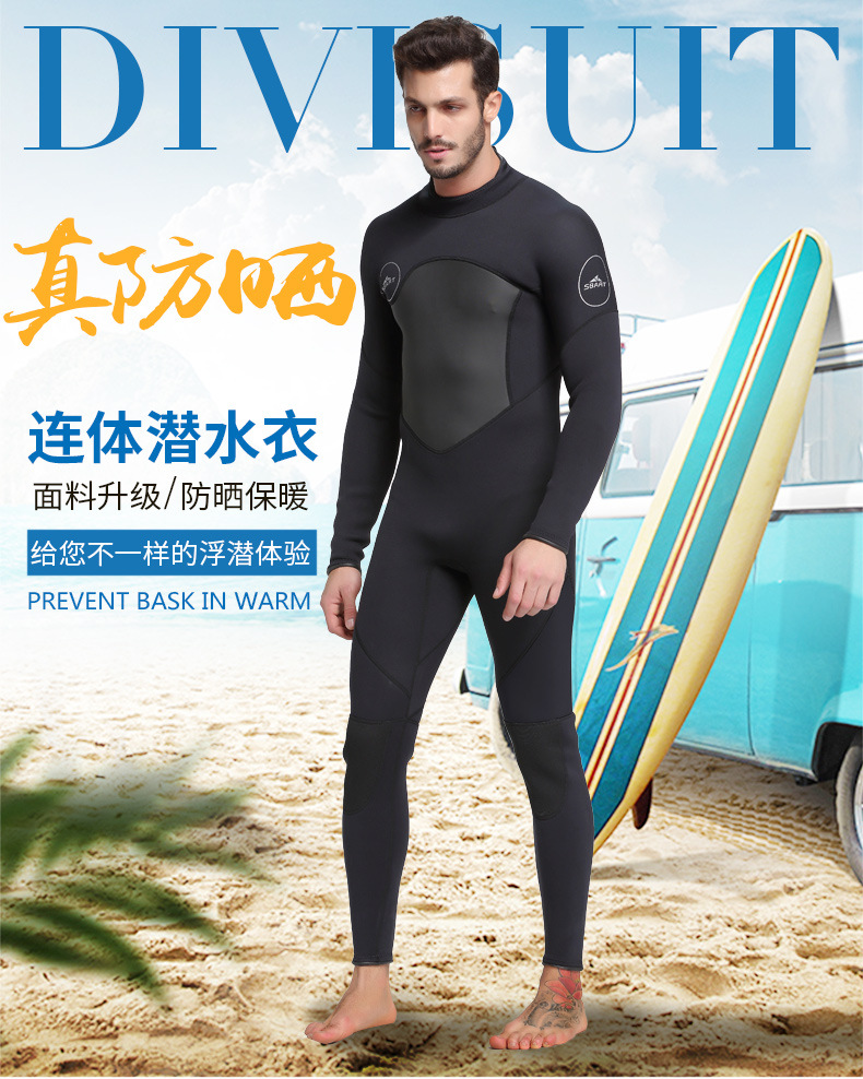 남성과 여성을위한 3MM 냉장 다이빙 세트 따뜻한 두꺼운 서핑 세트 원바디 긴소매 젖은 세트 스노클링 전문 다이빙 세트스토어 가기