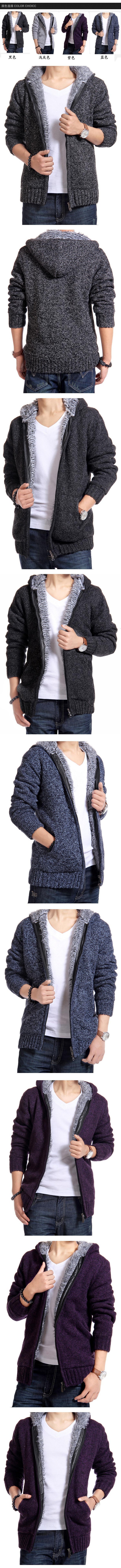 크로스-국경 대외 무역 새로운 남자의 기모 두꺼운 니트 스웨터 따뜻한 후드 캐주얼 니트 카디건 재킷 남자의 스웨터