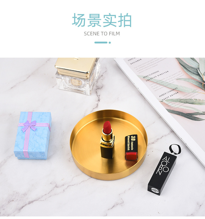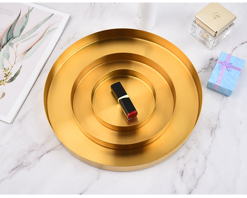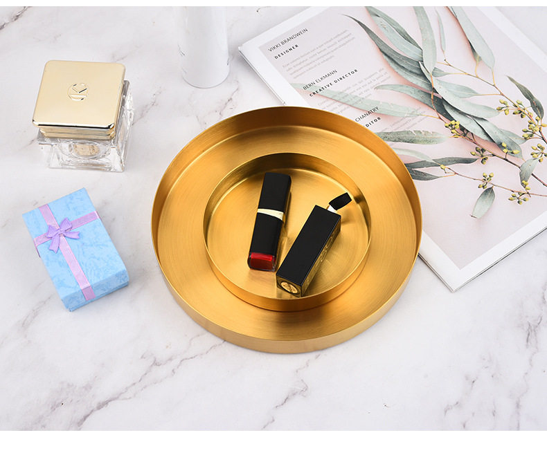 북유럽 인 스타일 라이트 럭셔리 스토리지 디스크 골든 스테인레스 스틸 라운드 스트레이트 에지 트레이 화장품 보석 차 접시