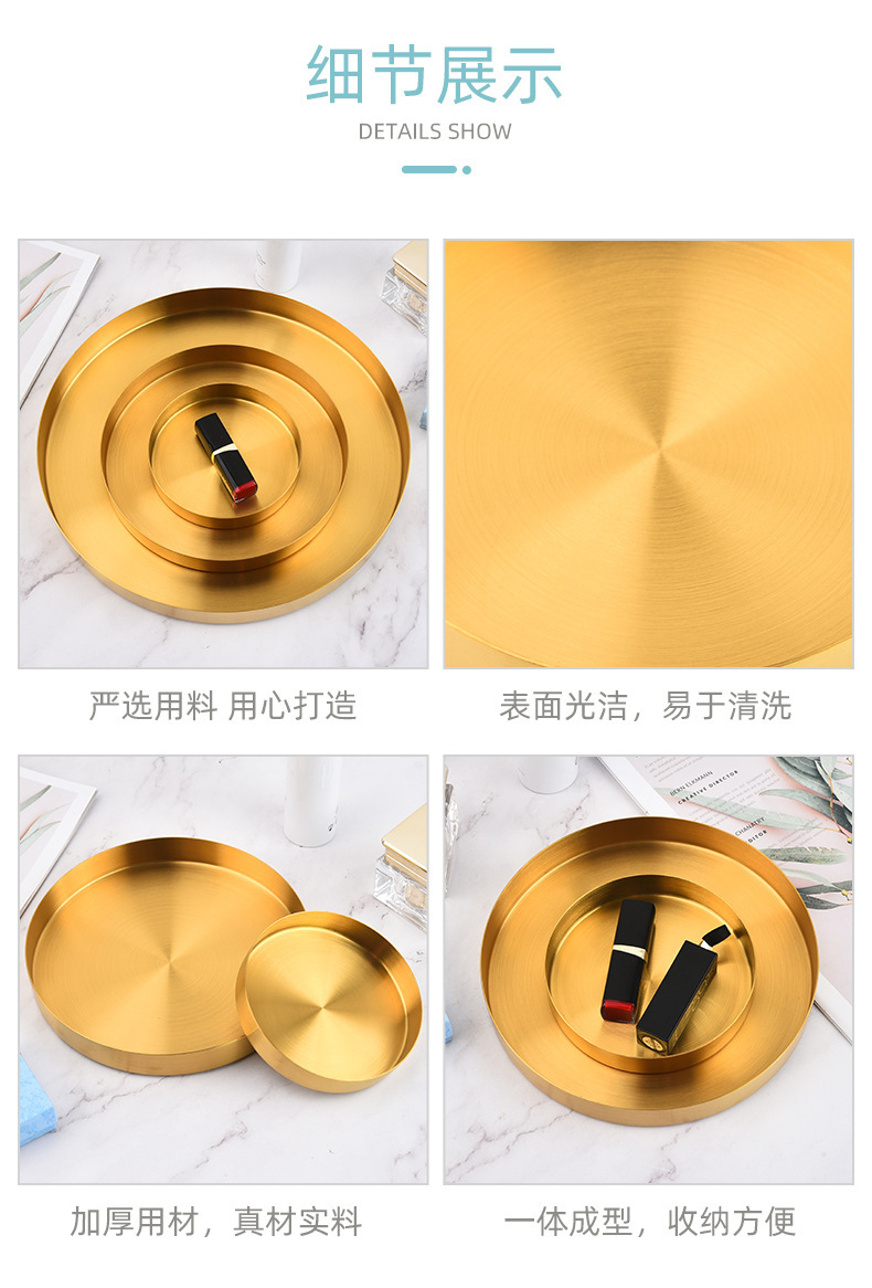 북유럽 인 스타일 라이트 럭셔리 스토리지 디스크 골든 스테인레스 스틸 라운드 스트레이트 에지 트레이 화장품 보석 차 접시스토어 가기