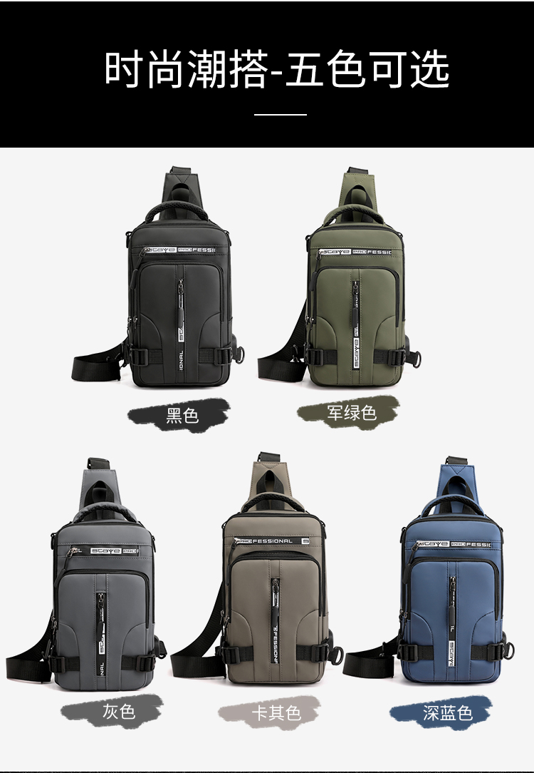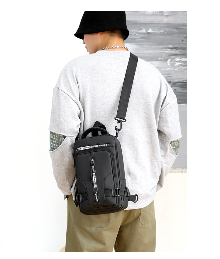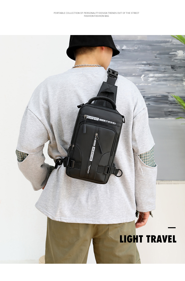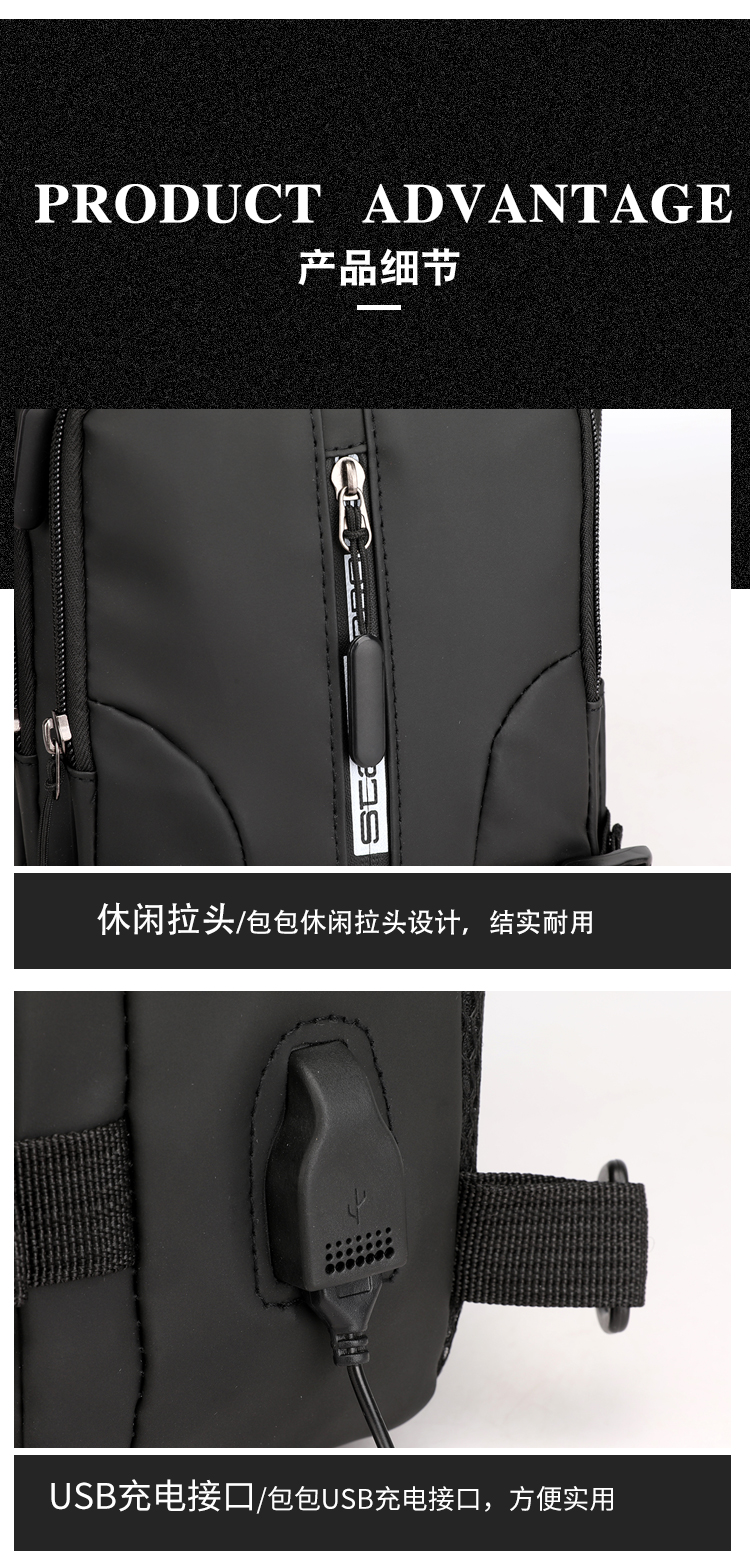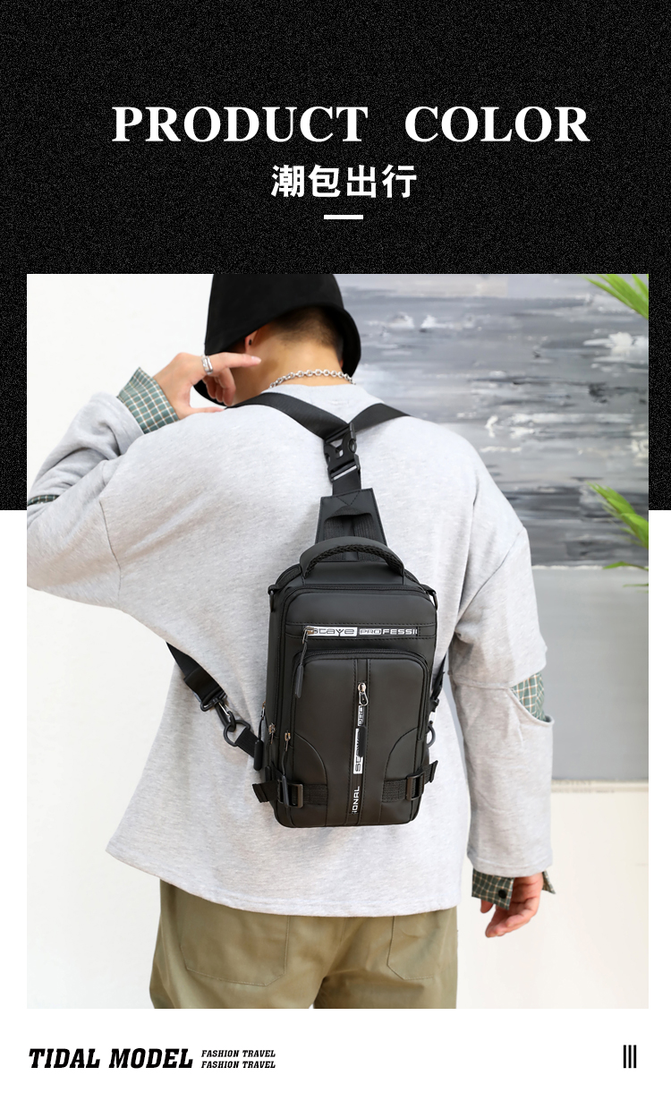 신상품 가슴 가방 남성용 트렌디 브랜드 USB 충전 다기능 패션 캐주얼 숄더 크로스 바디 스포츠 옥스포드 천 배낭스토어 가기