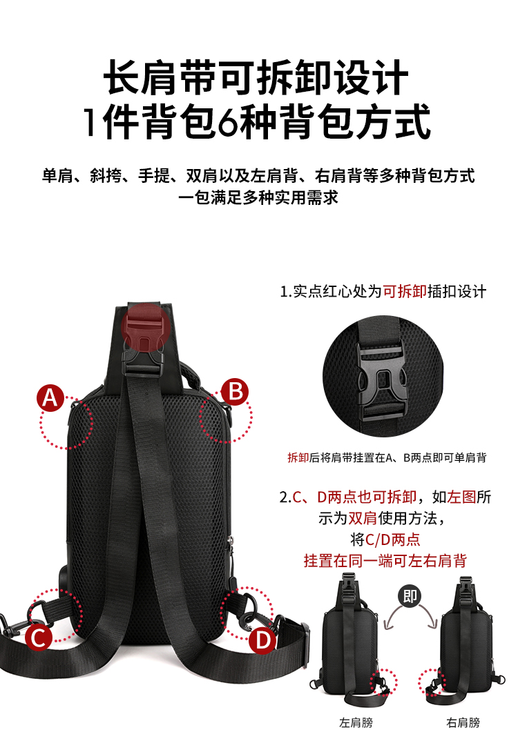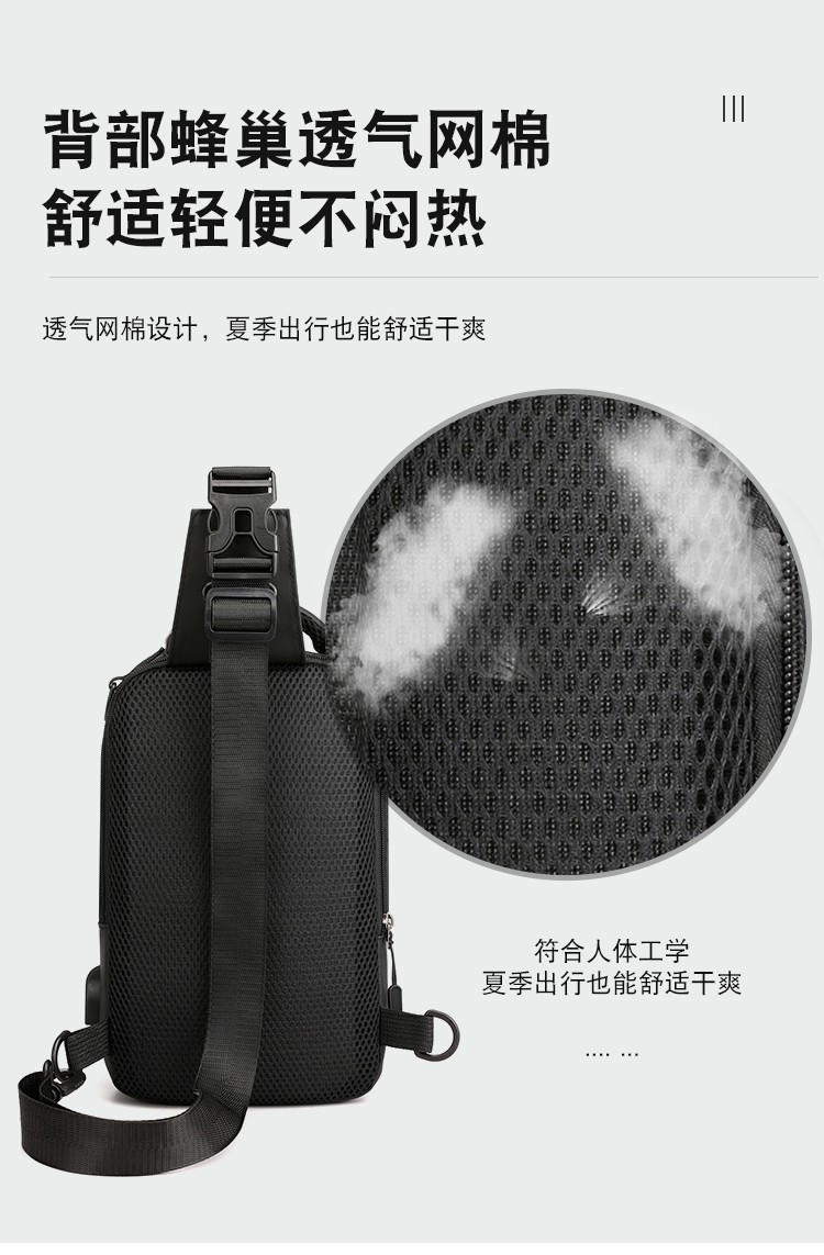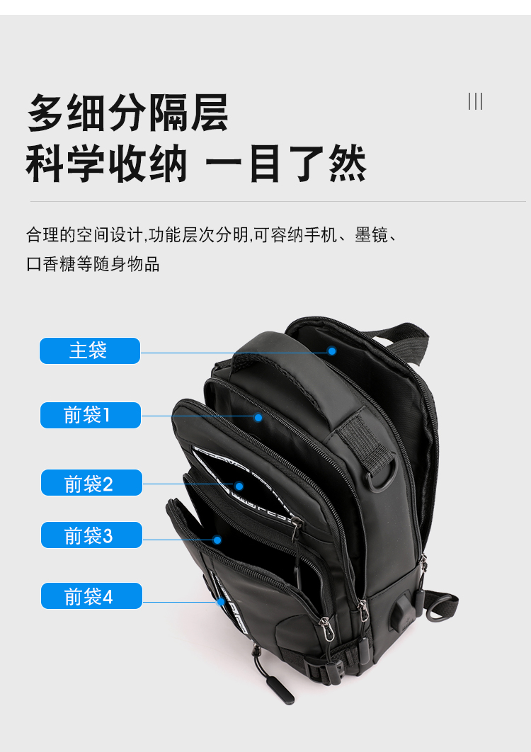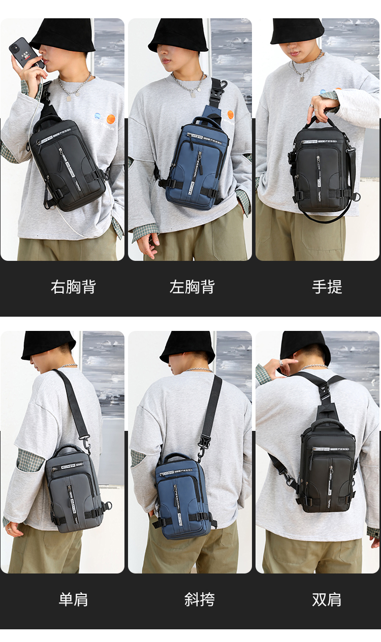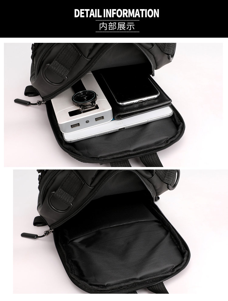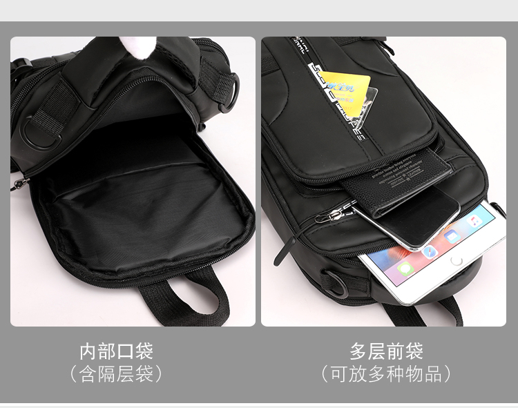 신상품 가슴 가방 남성용 트렌디 브랜드 USB 충전 다기능 패션 캐주얼 숄더 크로스 바디 스포츠 옥스포드 천 배낭스토어 가기