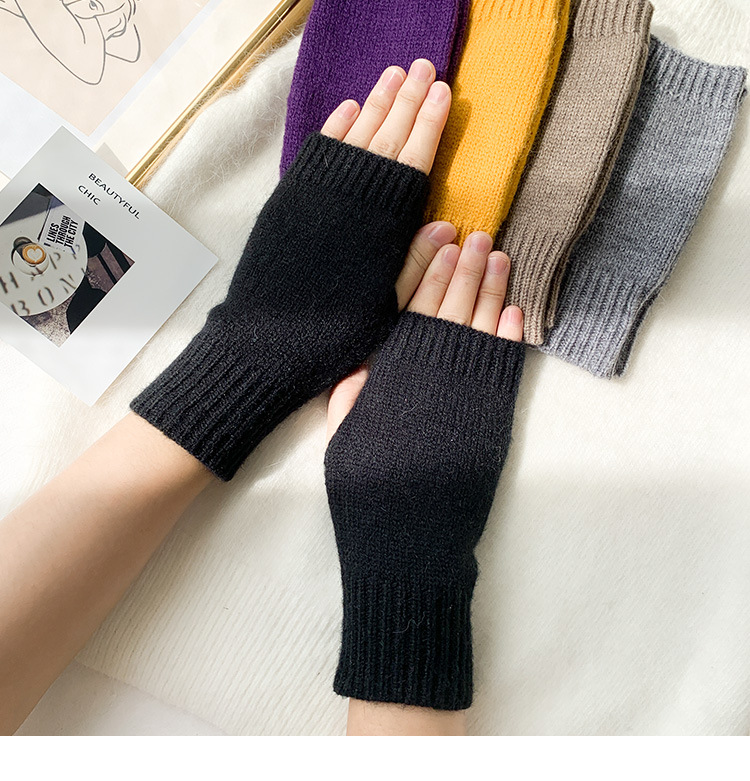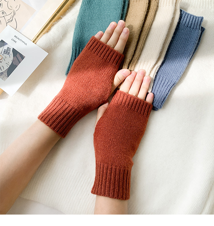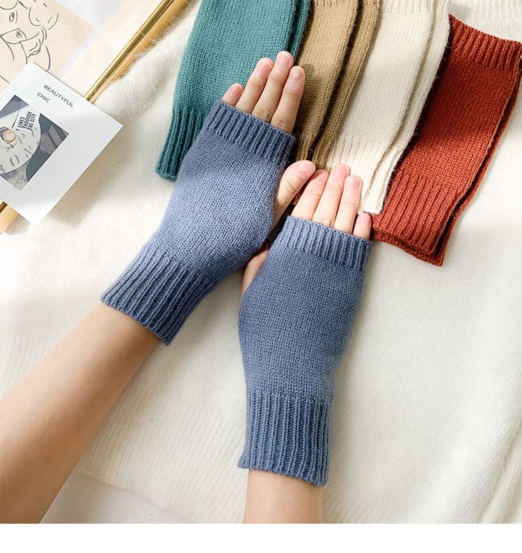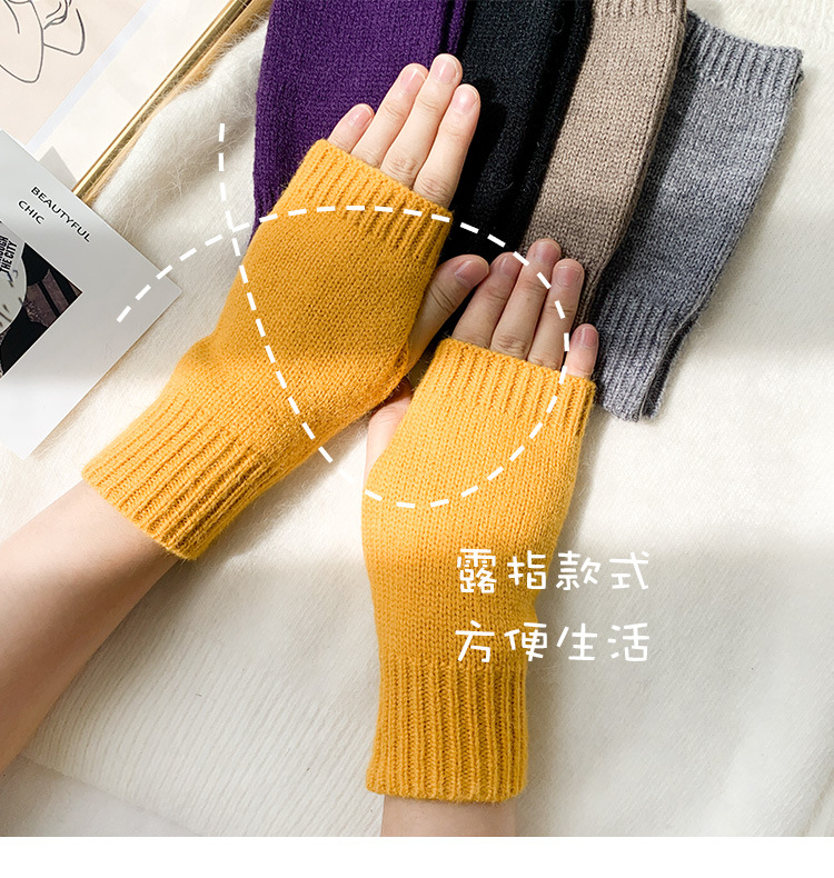 니트 반 컷 장갑 여성 겨울 오픈 손가락 귀여운 반 손가락 장갑 학생 쓰기 한국 따뜻한 양모 장갑 도매
