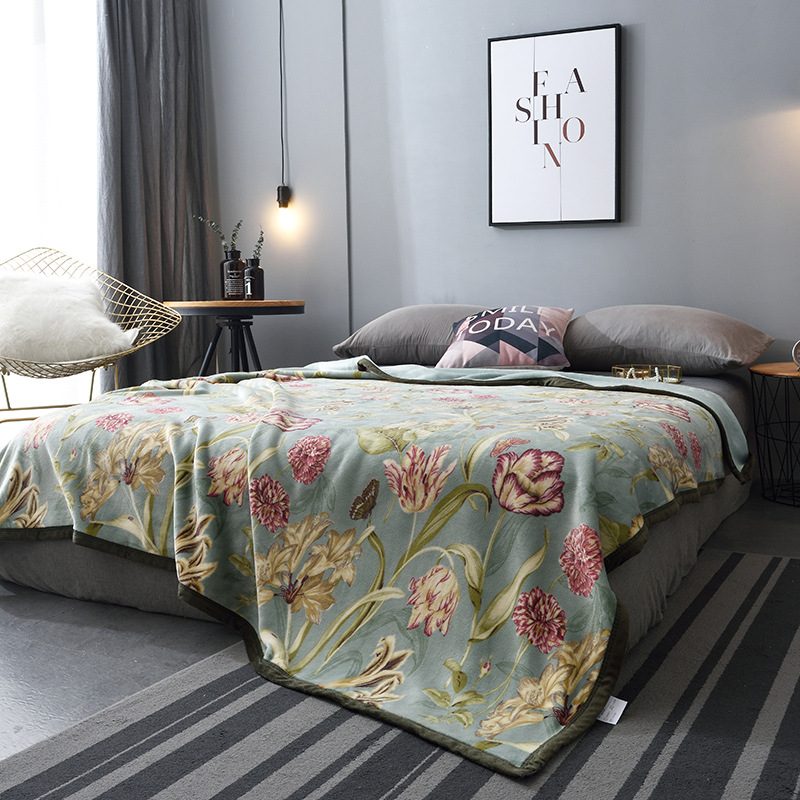 도매 우유 양털 합성 양털 담요 선물 담요 사계절 담요 단일 가정 유럽 꽃 더블 산호 양털 담요스토어 가기