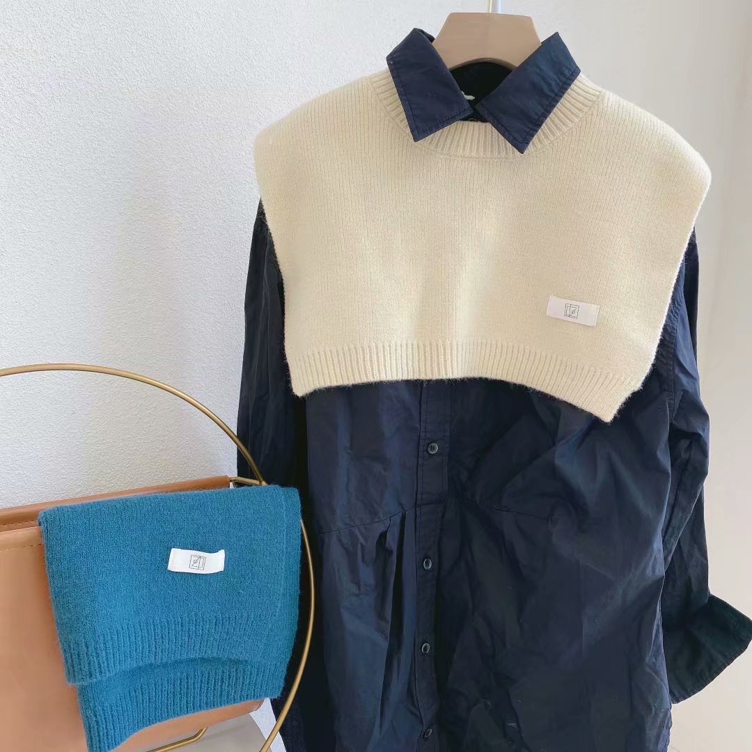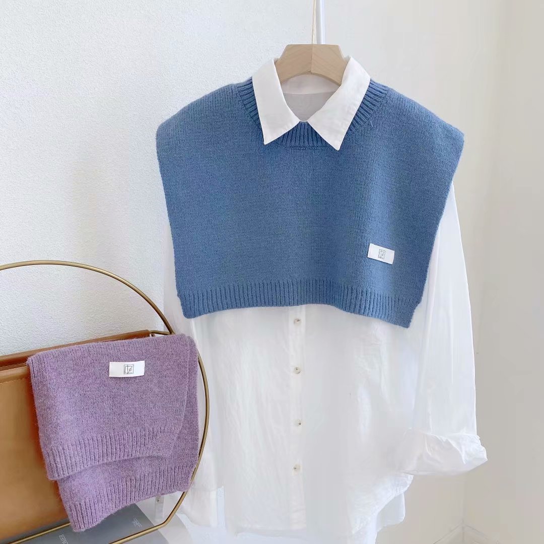 니트 목도리 여성의 짧은 양복 조끼 따뜻한 가짜 칼라 한국의 가을 한국 이스트 게이트 어깨 머리카락의 세대