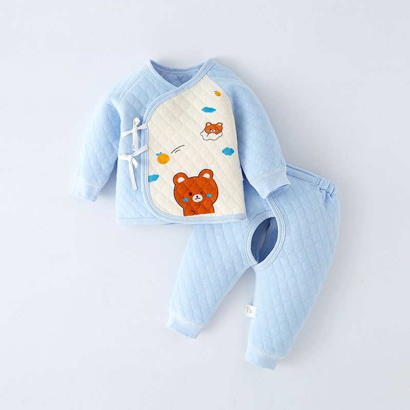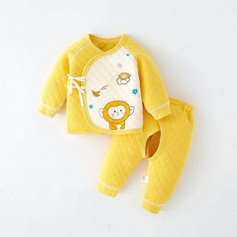 아기의 가을 옷과 바지 열 속옷 아기의 신생아 순면 세트 기모 소년과 소녀를위한 두꺼운 가을과 겨울 잠옷스토어 가기