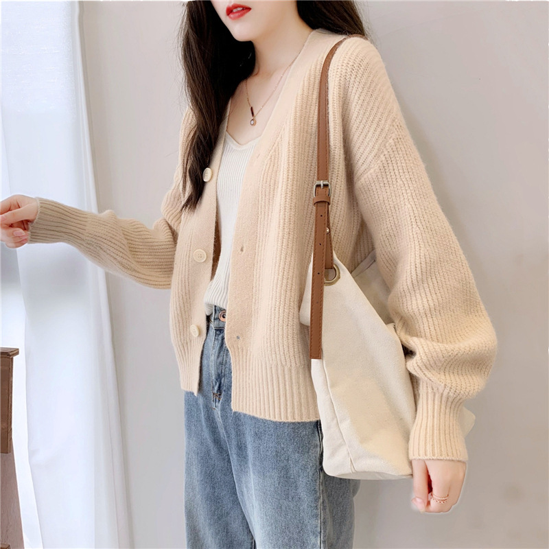 2022 봄과 가을 새로운 한국 스타일 느슨한 짧은 스웨터 여성용 겉옷 V-넥 니트 가디건 샤넬 스타일 패션 탑