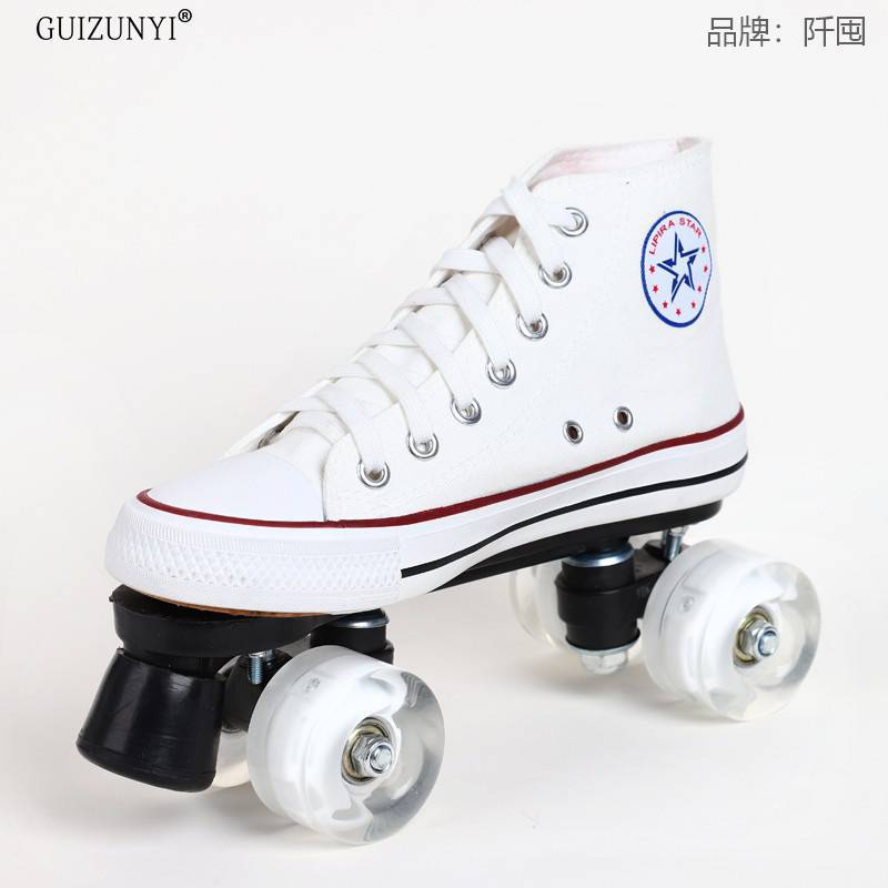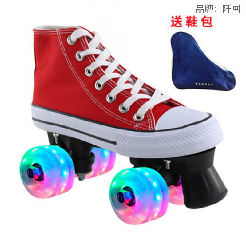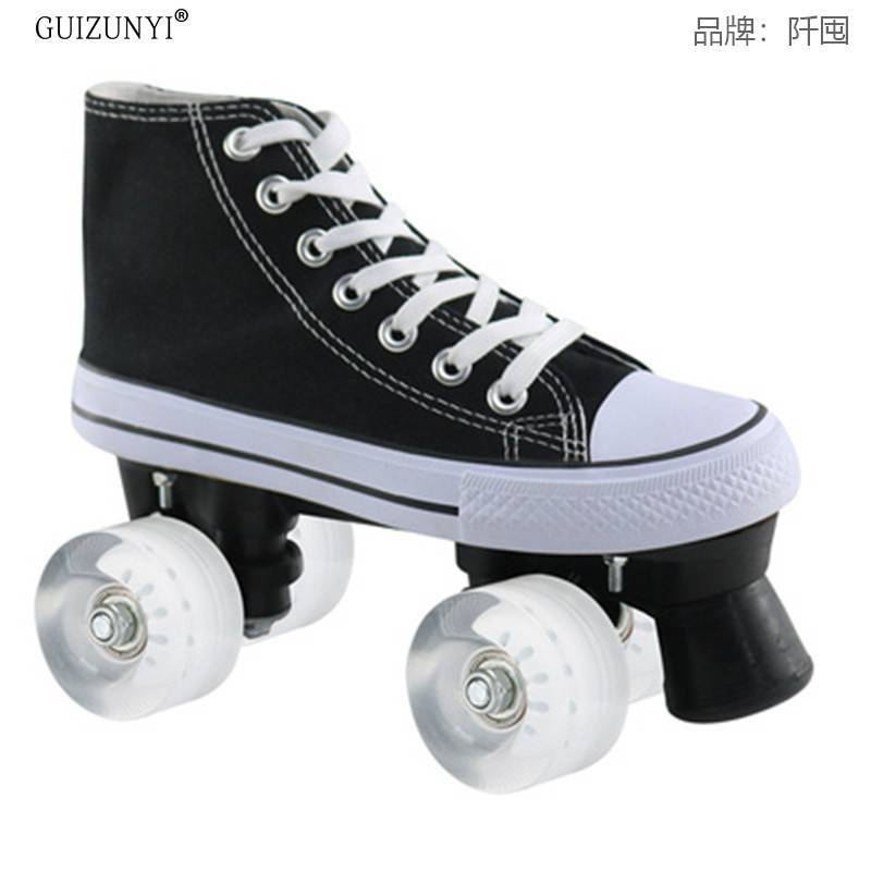 재고 통기성 캔버스 스케이트 성인 더블 행 롤러 스케이트 스케이트 링크 어린이 롤러 스케이트 운송