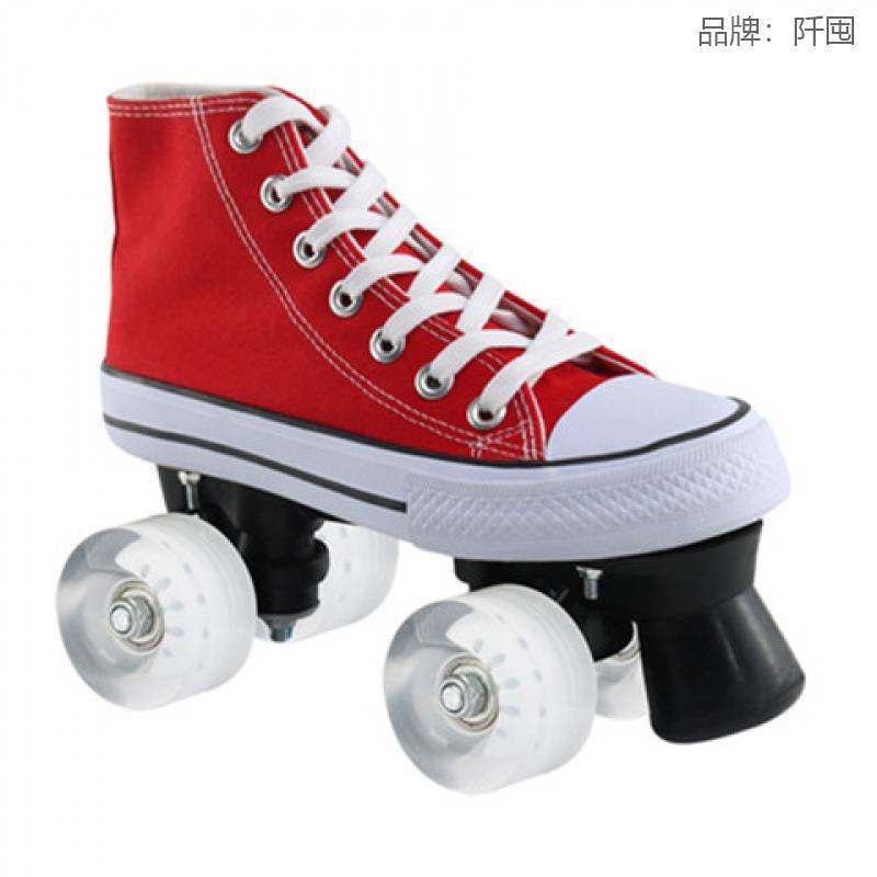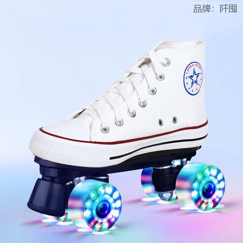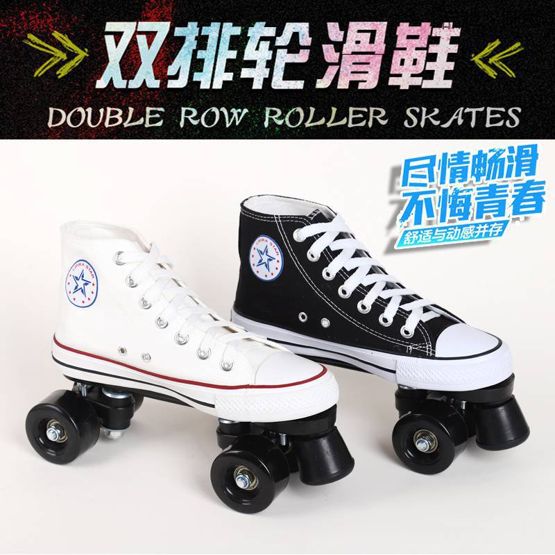 재고 통기성 캔버스 스케이트 성인 더블 행 롤러 스케이트 스케이트 링크 어린이 롤러 스케이트 운송스토어 가기