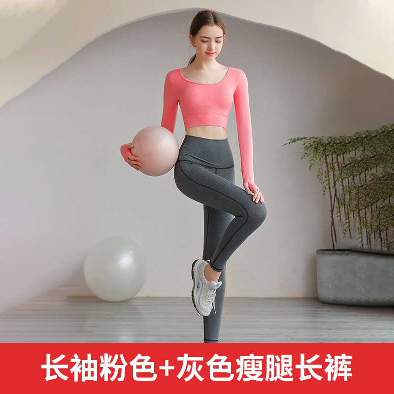 2021 새로운 요가 의류 여성의 가을 긴 소매 세트 전문 체육관 꽉 가슴 패드 스포츠 탑 실행스토어 가기