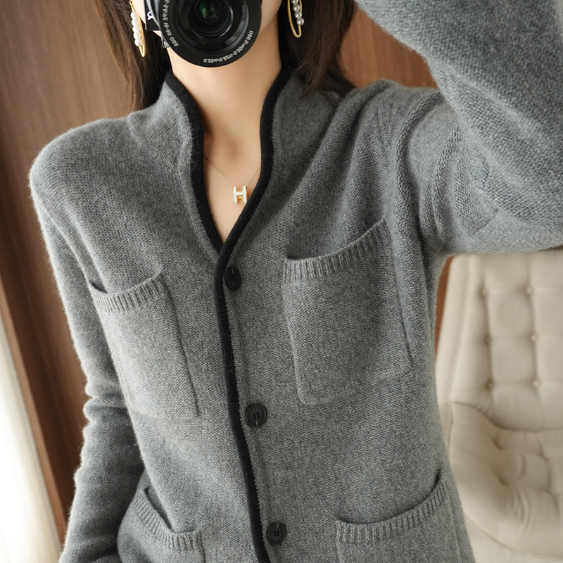 트렌디 한 새로운 가을과 겨울 울 스웨터 여자의 카디건 스탠드 칼라 다채로운 가장자리 느슨한 플러스 사이즈 캐주얼 스웨터 독특한 캐시미어 코트 두꺼운스토어 가기