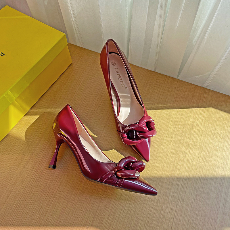 31-44 사이즈 mhjm 슈퍼 소프트 페이턴트 가죽 뾰족한 발가락 로우 컷 스틸레토 힐 여성 신발 패션 싱글 레이어 신발스토어 가기
