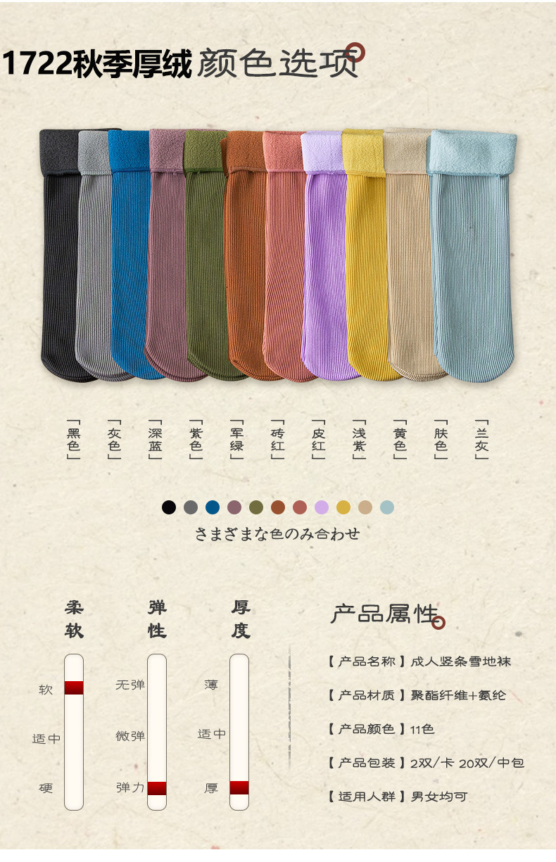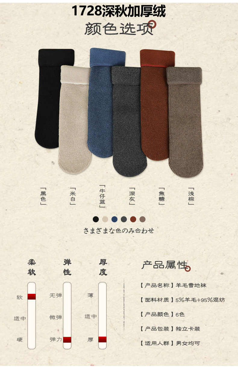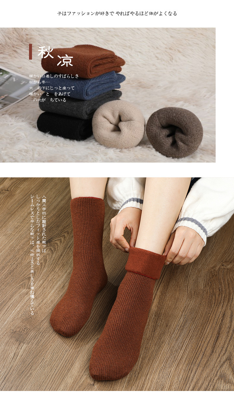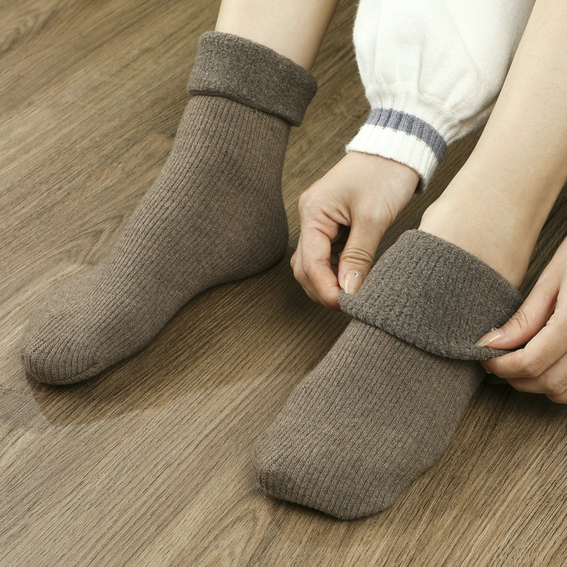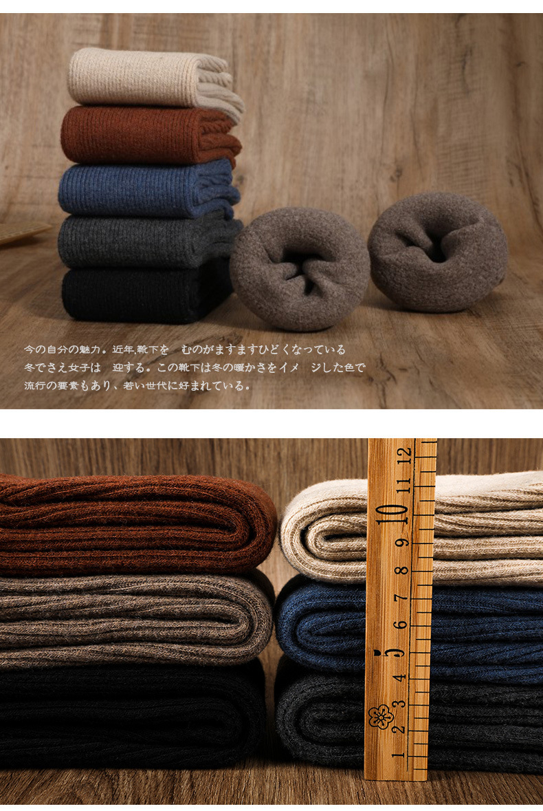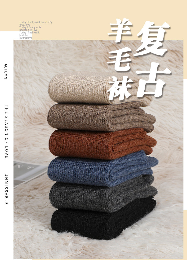 남녀공용 겨울용 방한 양모 양말, 중간 길이 레트로 단색 캐시미어 스노우 양말 도매, 다용도 두꺼운 보온 양말스토어 가기