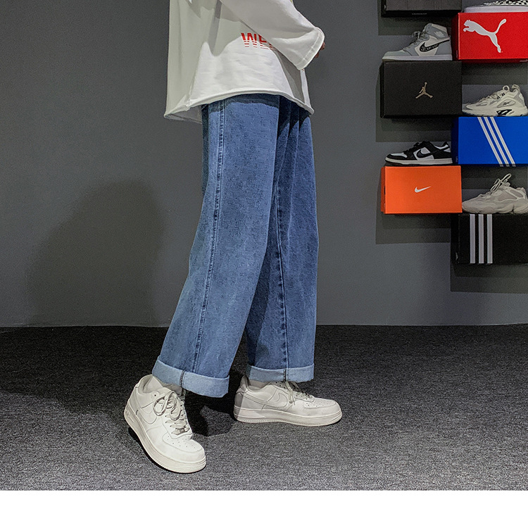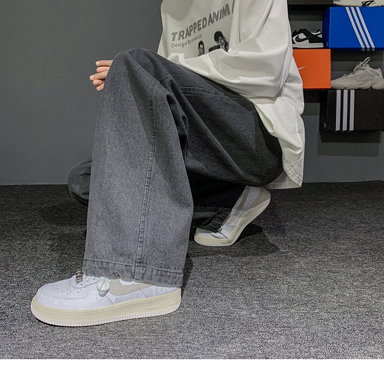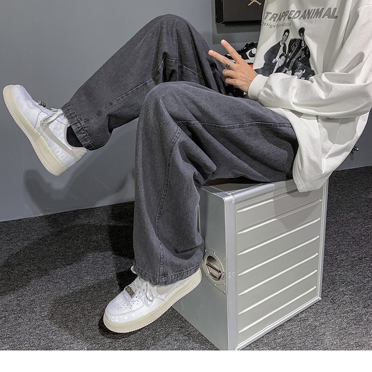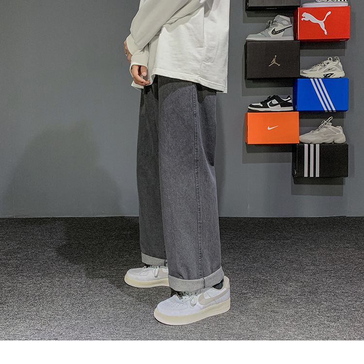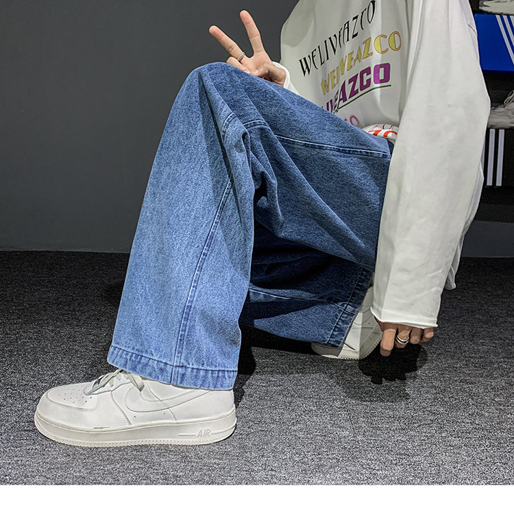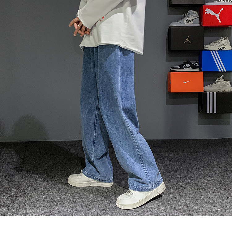 빈티지 청바지 남자의 느슨한 스트레이트 플러스 사이즈 캐주얼 바지 봄과 여름 한국 스타일 와이드 레그 아빠 바지 남자의 유행스토어 가기